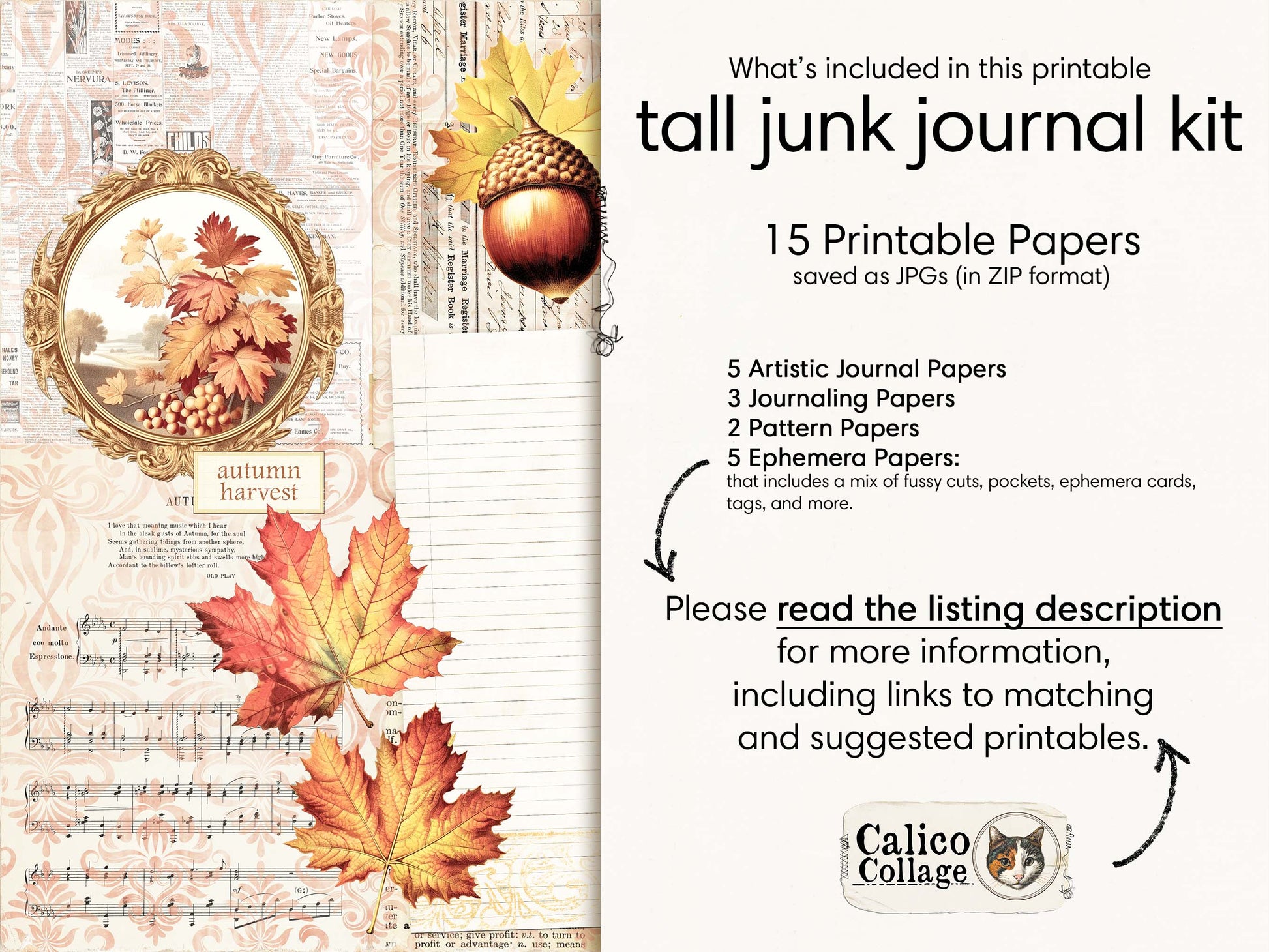 Autumn Ephemera Tall Junk Journal Kit, Fall Ephemera