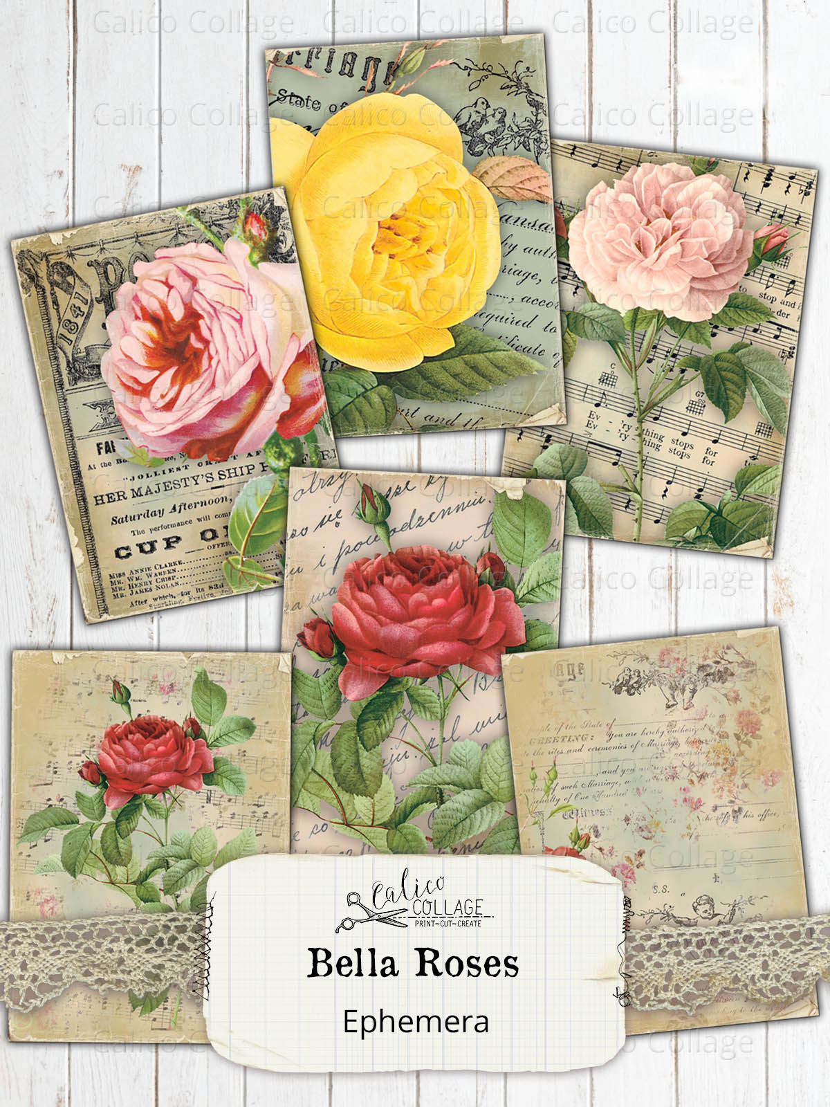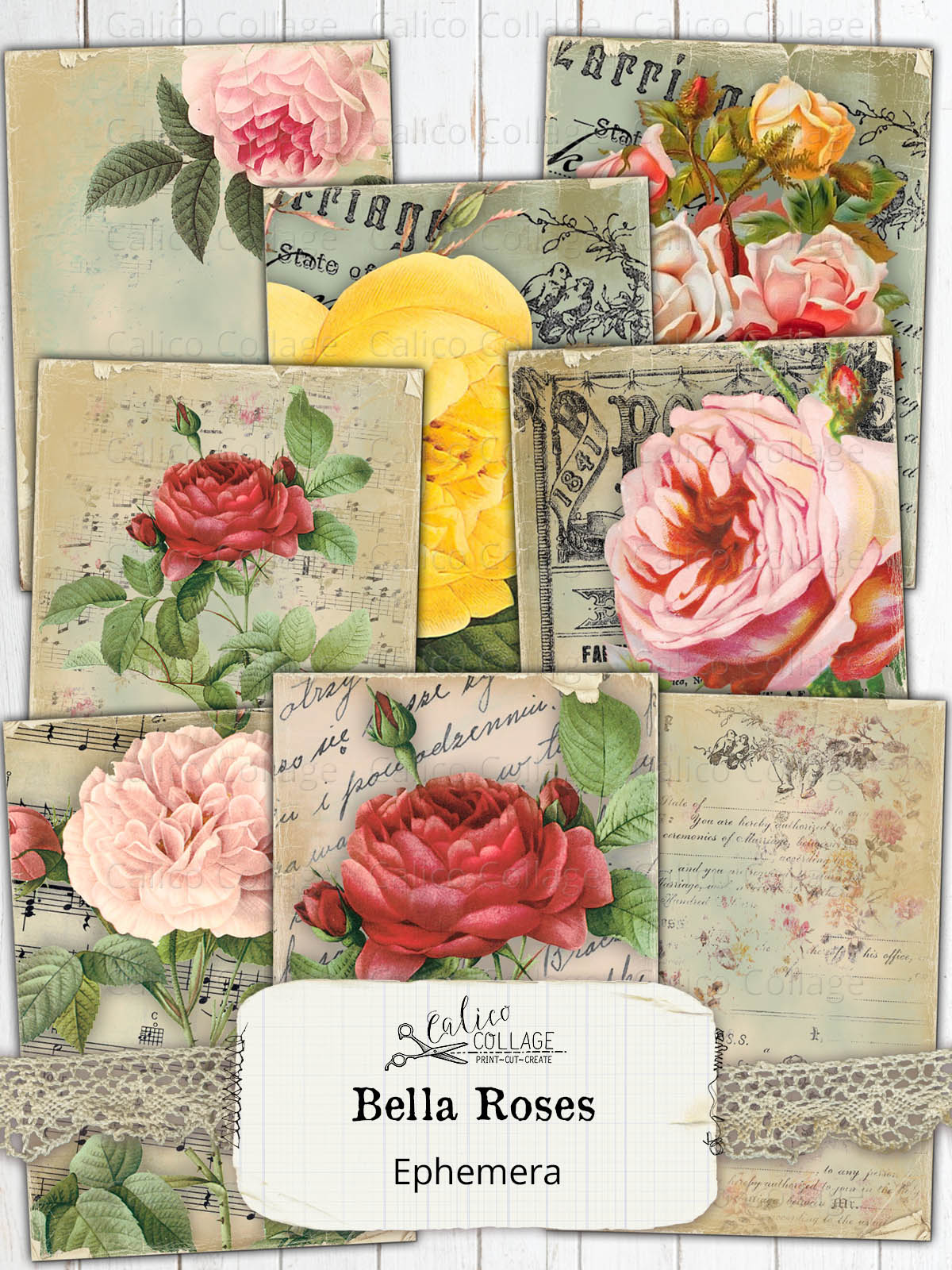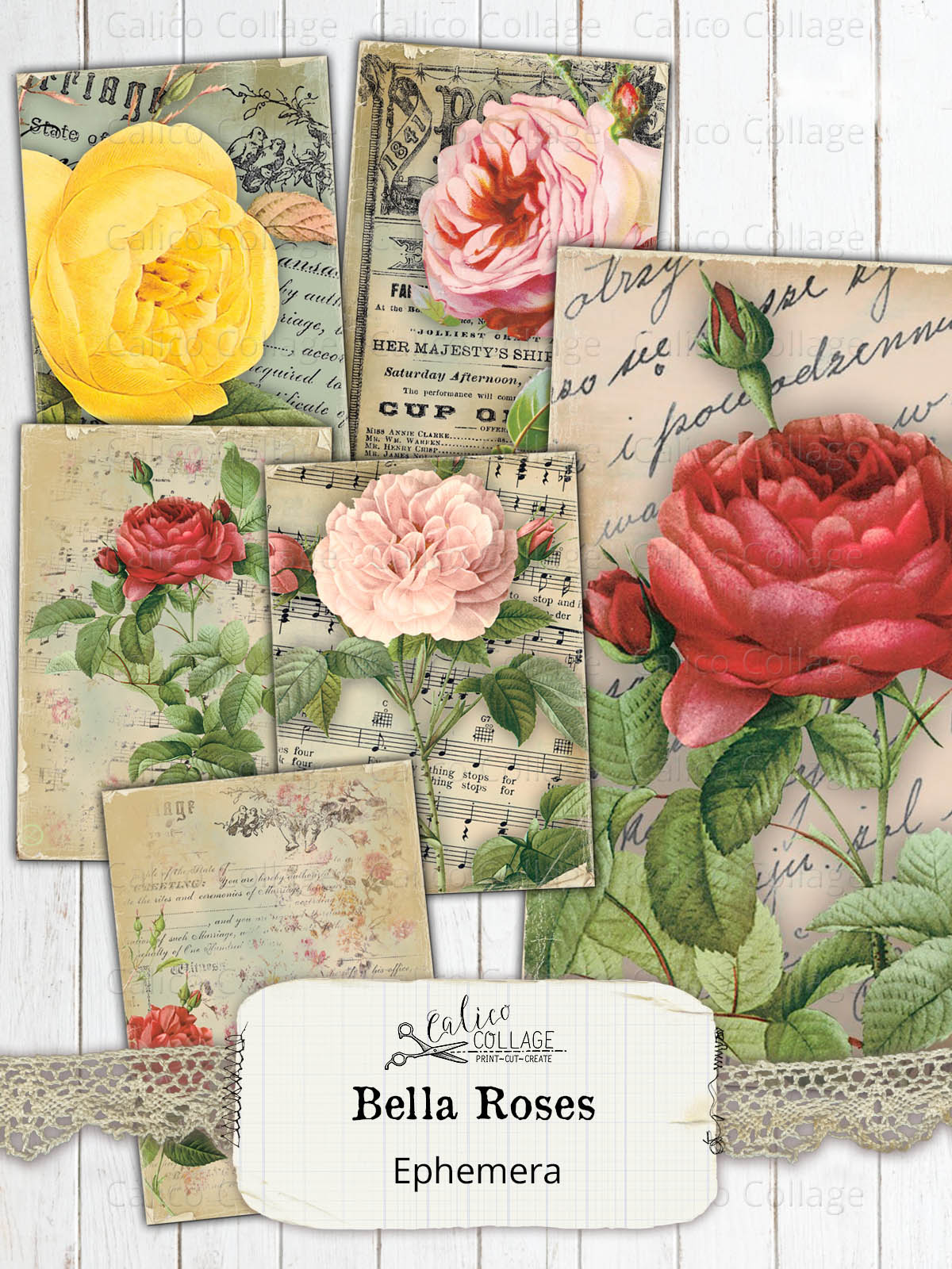 Pretty vintage styled Rose Ephemera. These ephemera cards would be perfect for junk journals, journaling cards, jewelry cards and so much more!