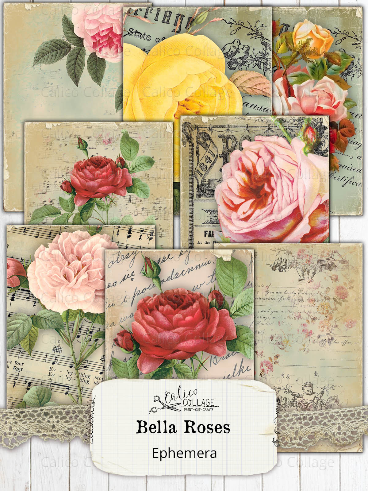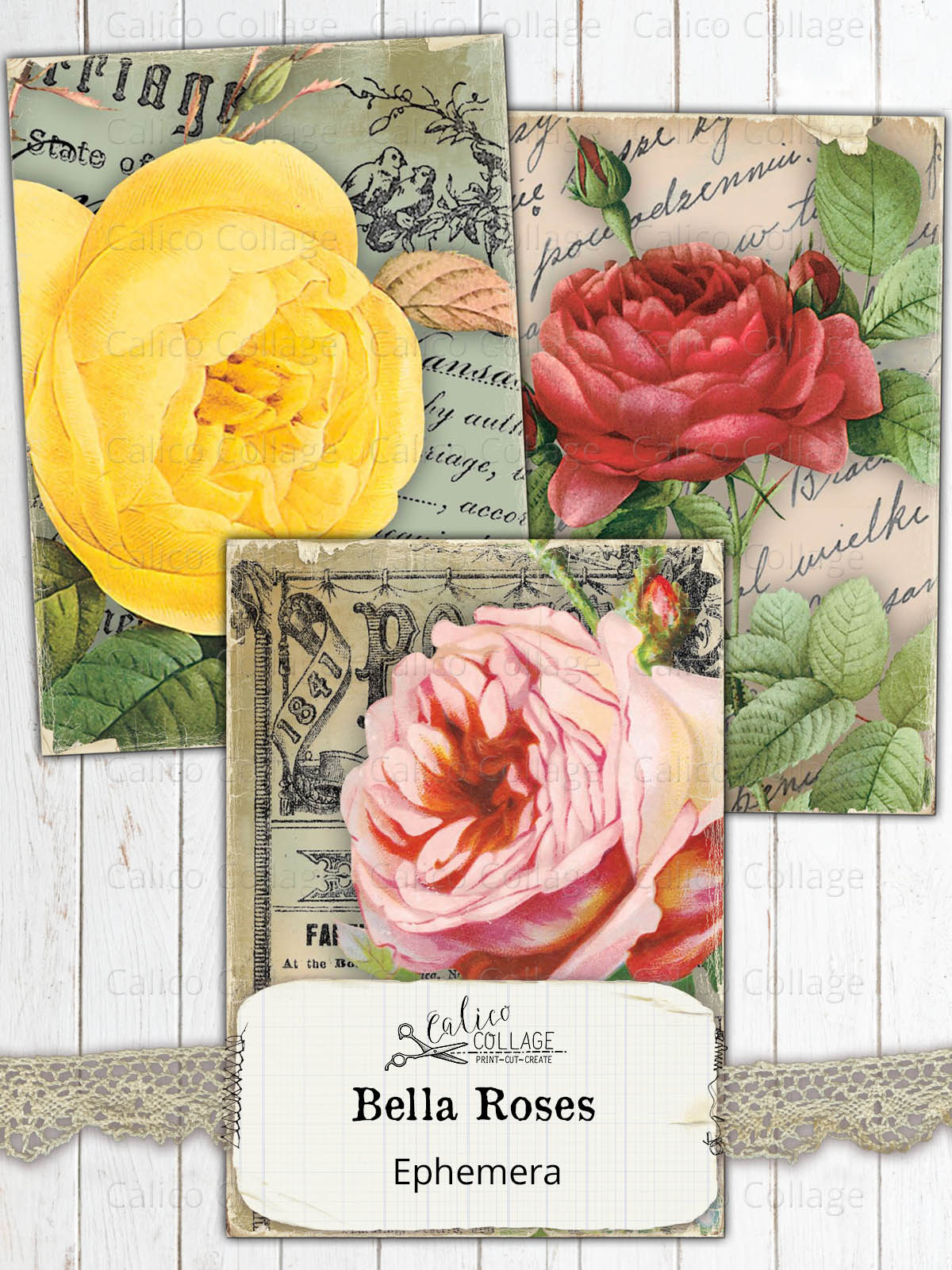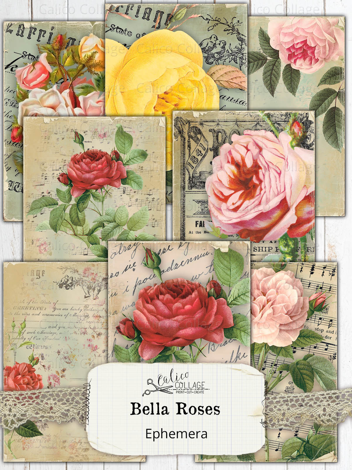 Pretty vintage styled Rose Ephemera. These ephemera cards would be perfect for junk journals, journaling cards, jewelry cards and so much more!