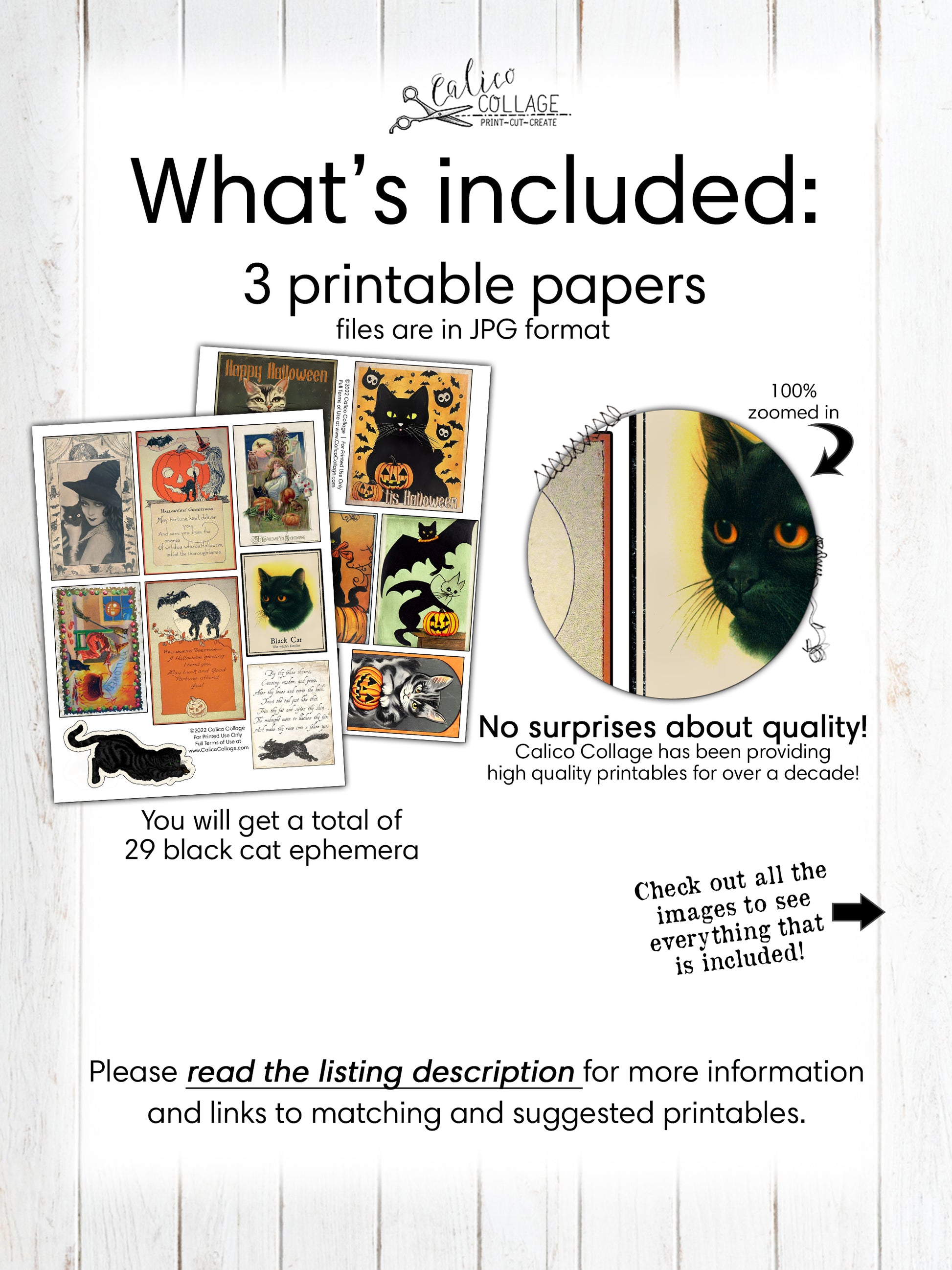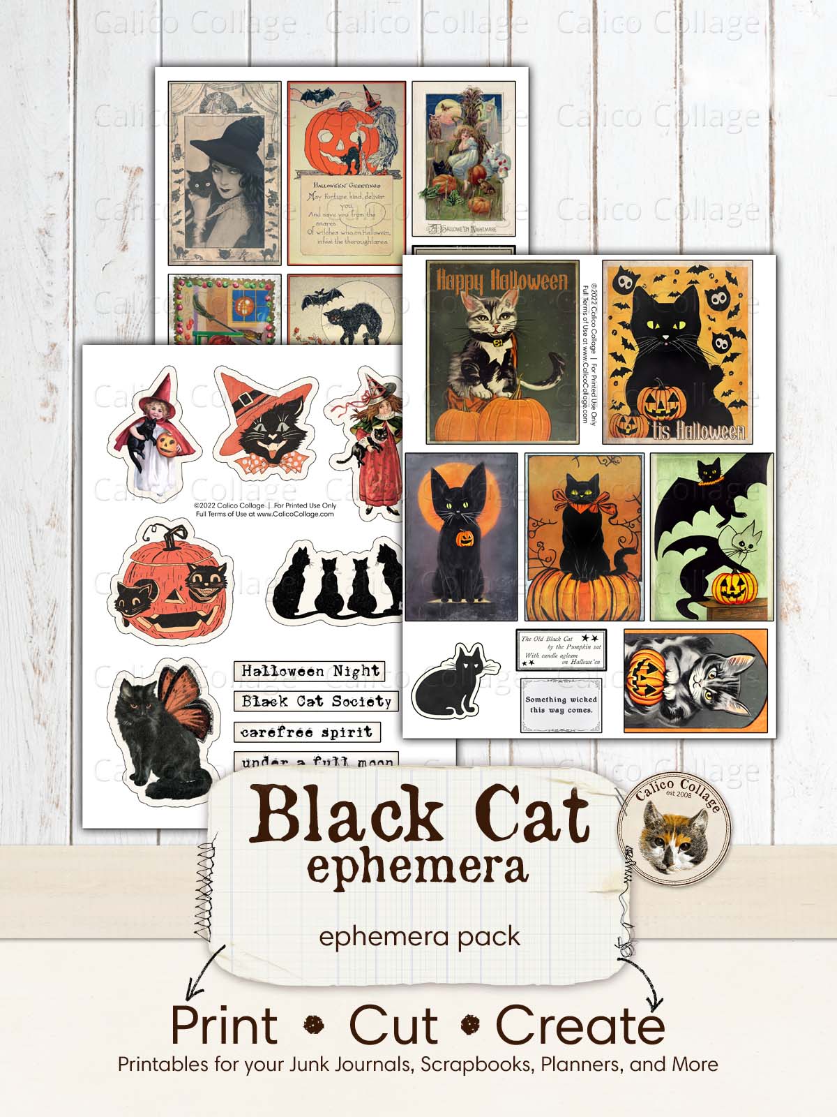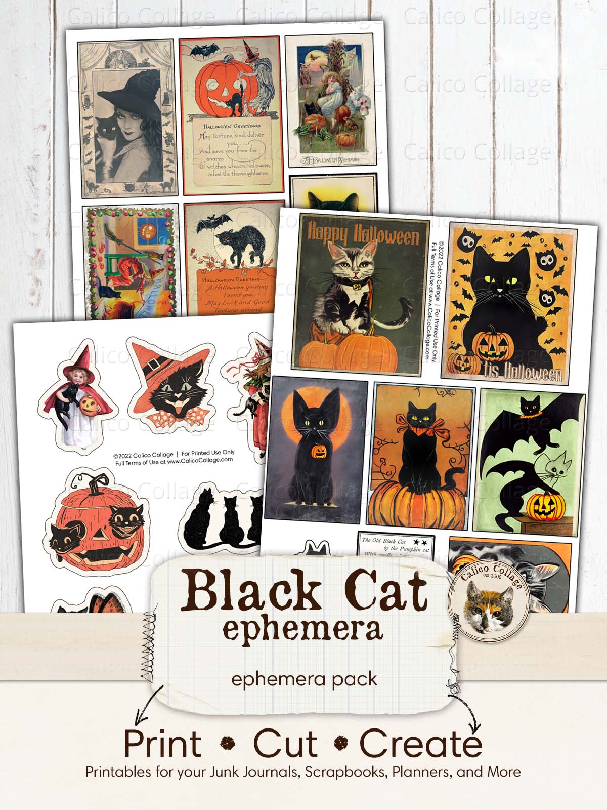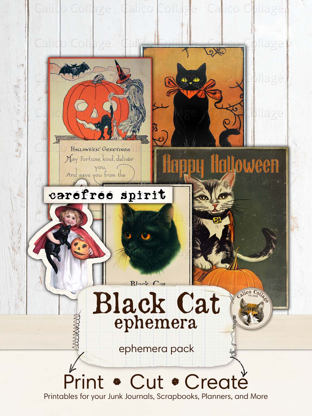 🖨️These junk journal printable Black Cat Halloween Ephemera are a must-have for any junk journal crafter! Add that little something special with original Halloween Ephemera!