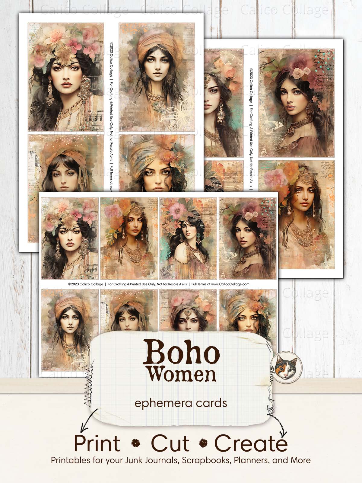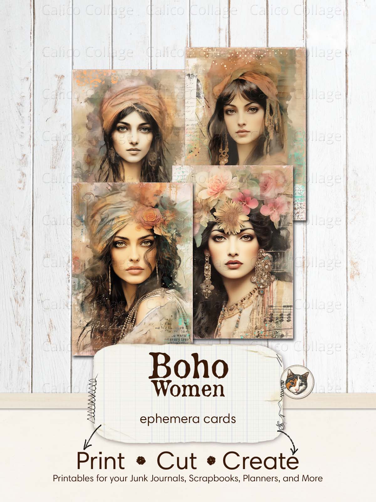 Boho Ephemera Junk Journal Printable, Gypsy Women Ephemera Cards