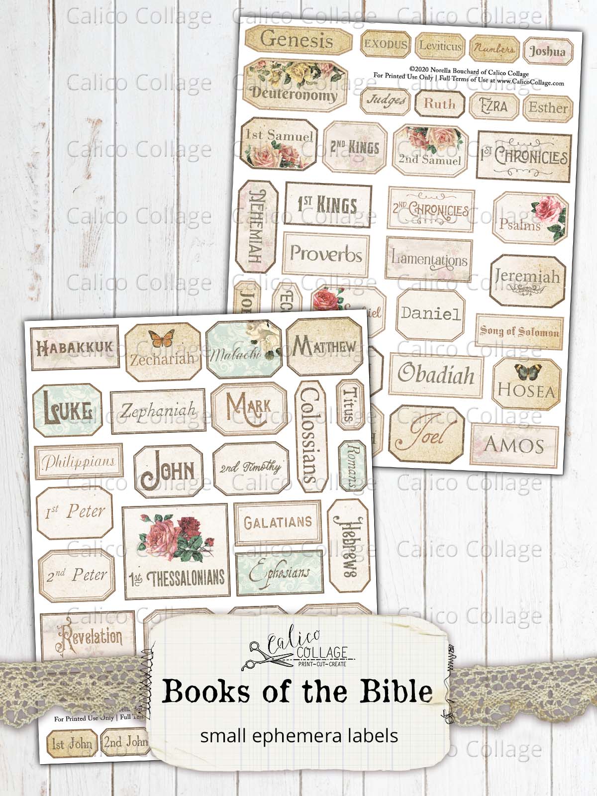 🖨️Elevate your Bible journaling with these precisely crafted fussy cut labels featuring the Books of the Bible. This Junk Journal Printable set is perfect for organizing, referencing, or highlighting specific passages within your journal. Each label is beautifully designed to enhance your study experience, making it easy to navigate the sacred texts. Ideal for anyone looking to deepen their engagement with scripture, these labels add both functionality and aesthetic appeal to your Bible journaling practice.