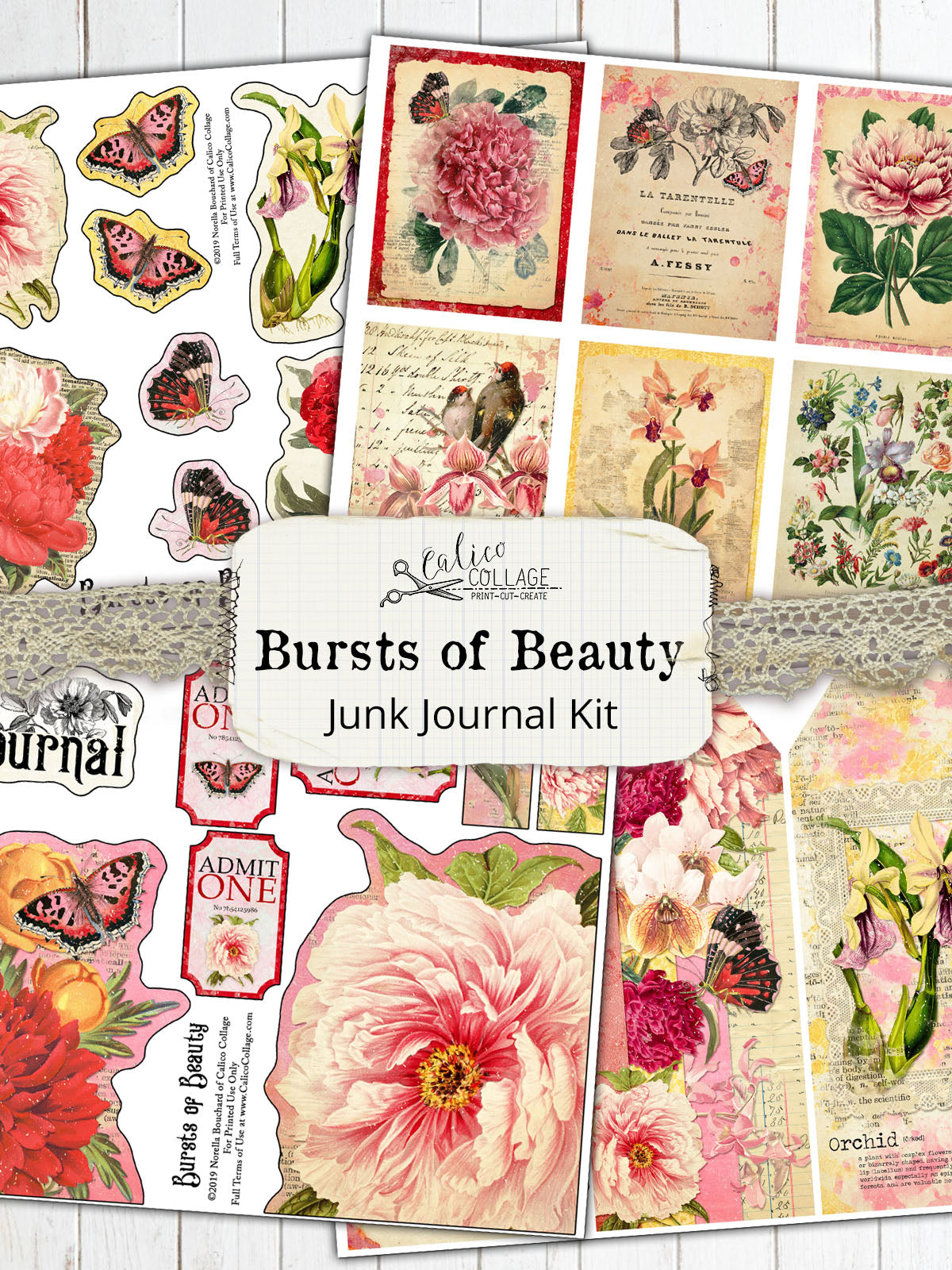 🖨️This artfully designed floral junk journal kit is full of beautiful peonies and orchids. Use the pages to fill up your junk journal by folding them in half, then cut out the ephemera and use them for embellishments. Junk Journal Kits can be used for other paper crafts such as glue books, scrapbooks, travel notes, and more. Let your awe-inspiring imagination play!
