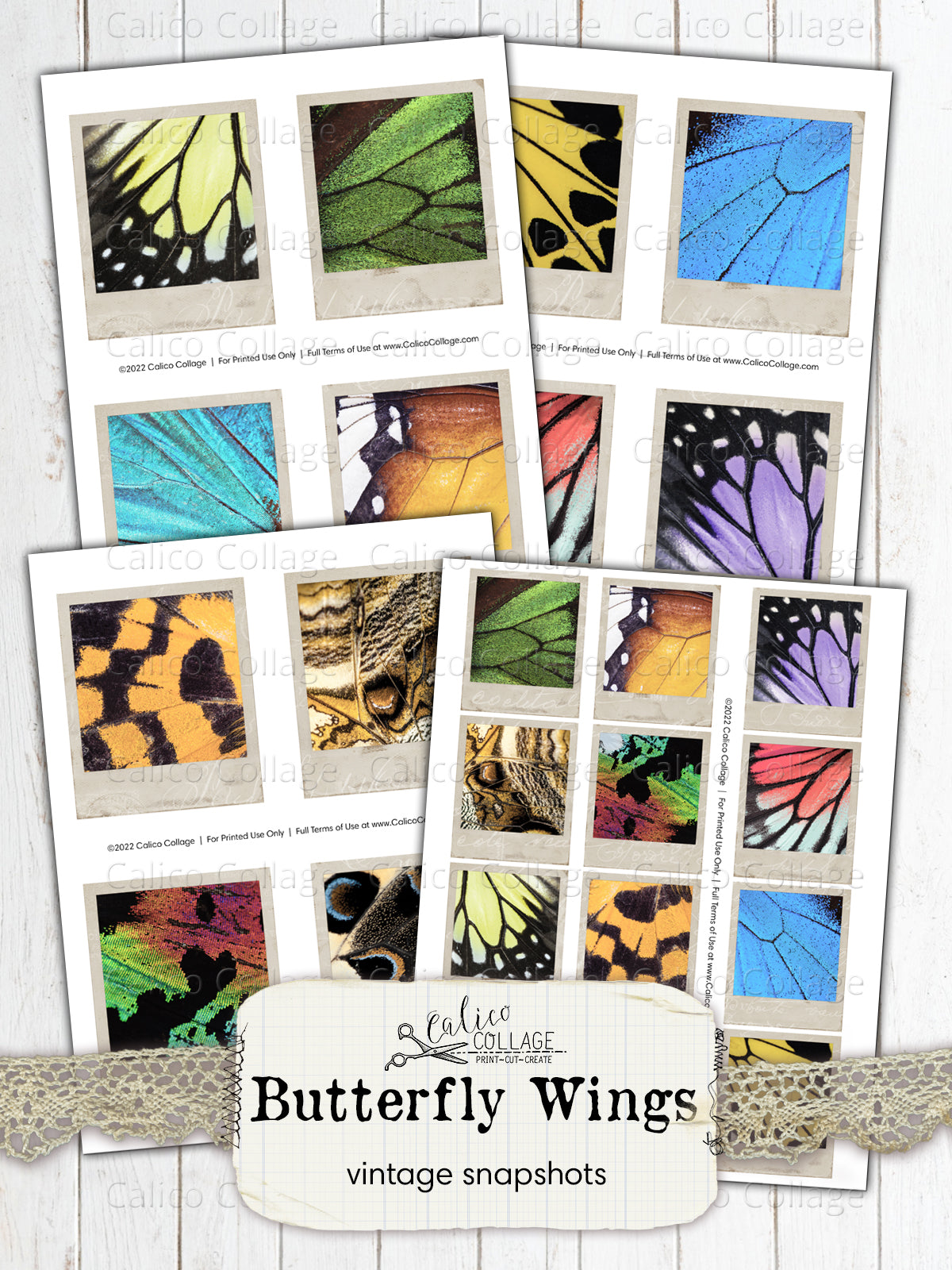 Butterfly Wings Vintage Snapshots, Junk Journal Printable