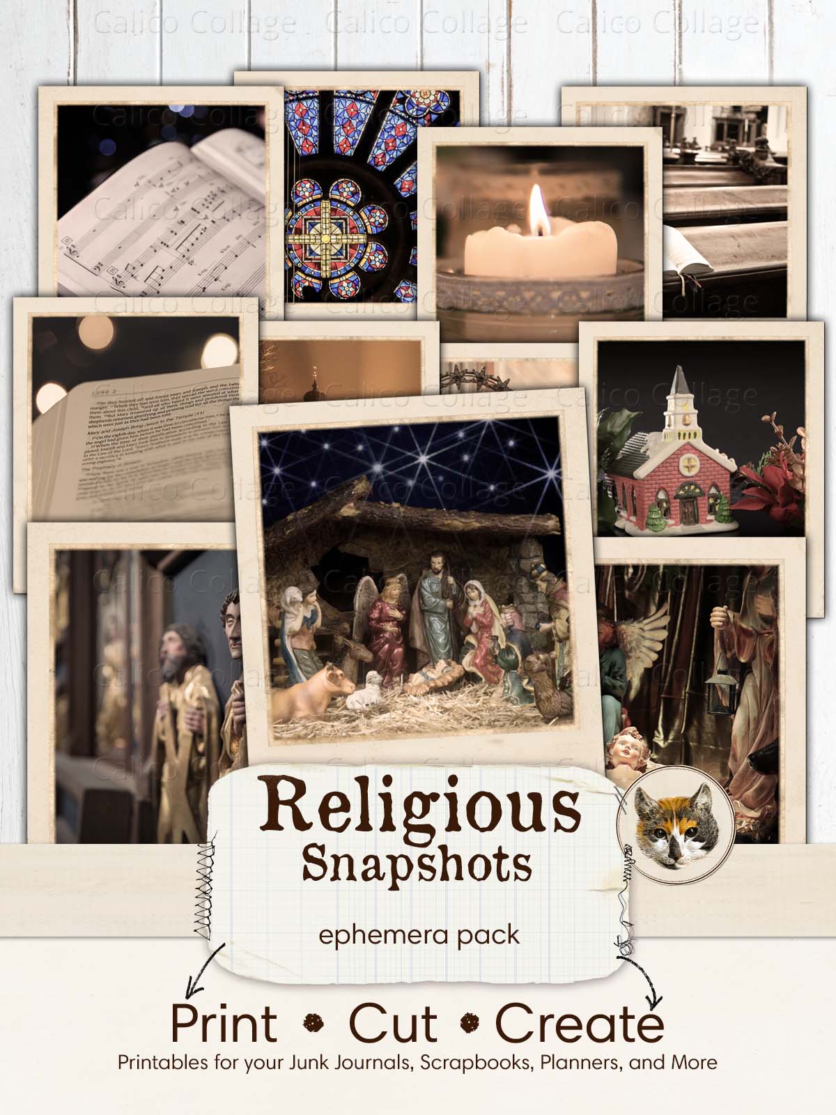 🖨️A beautiful collection of printable snapshots in a wonderful Christmas faith ephemera theme. Perfect for your bible journaling. These snapshots have been aged to match your next Faith Junk Journal. These unique printables would be perfect for many different paper crafts such as physical ephemera, mixed media, junk journals, bullet journals, vintage journals, hangtags and so much more! Let your awe-inspiring imagination play!