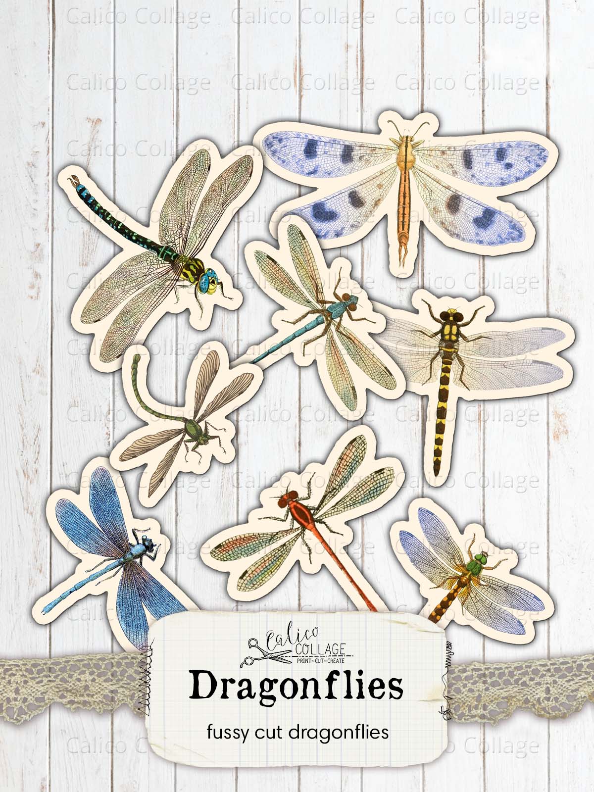 Dragonfly Fussy Cut, Junk Journal Ephemera