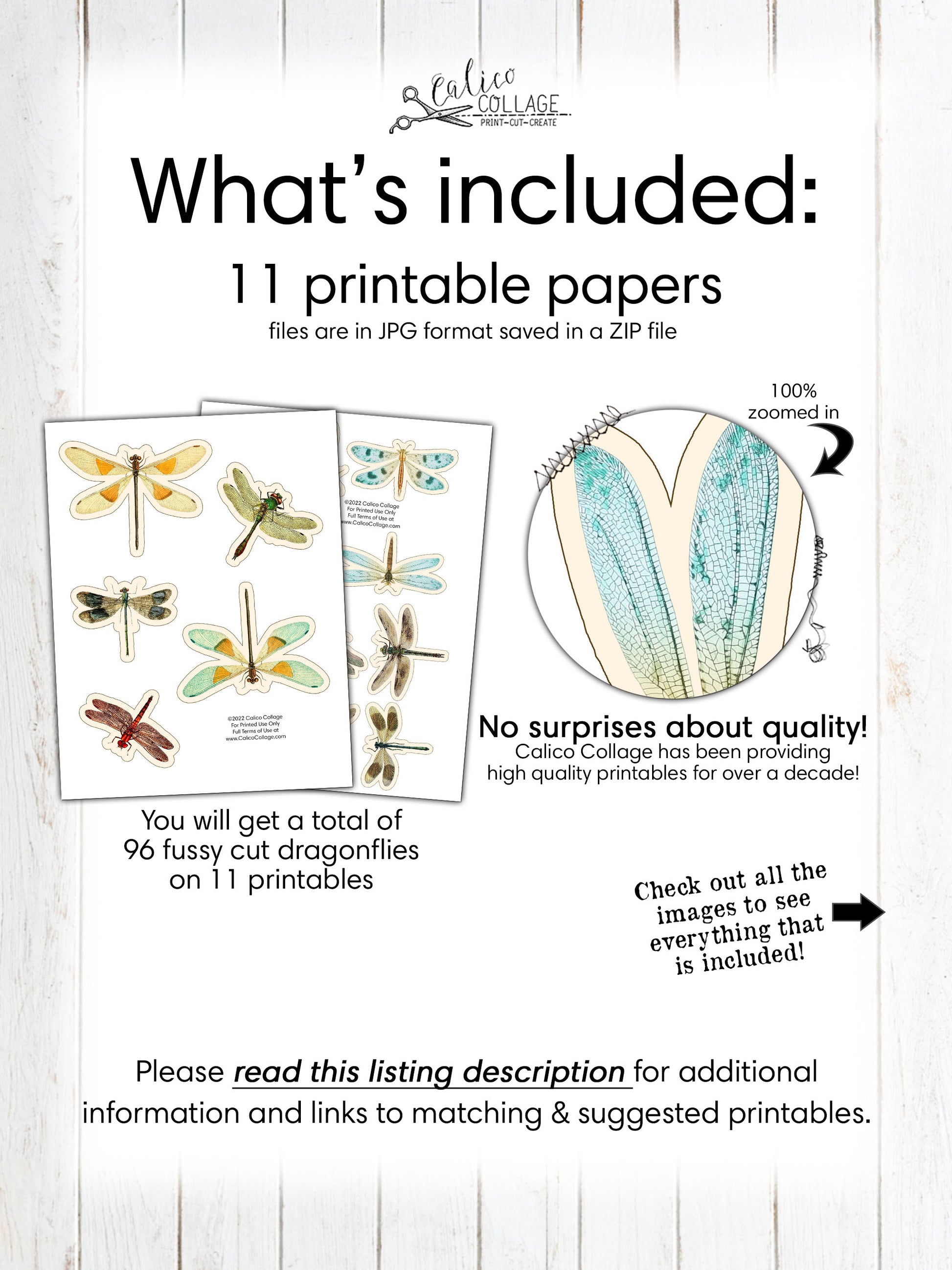 🖨️A large collection of vintage fussy cut Dragonflies is a must have for all paper crafters! These junk journal printables would be ideal for a variety of paper crafts, including physical ephemera, mixed media, junk journals, bullet journals, vintage journals, hang tags, and so much more! Allow your awe-inspiring imagination to run wild!