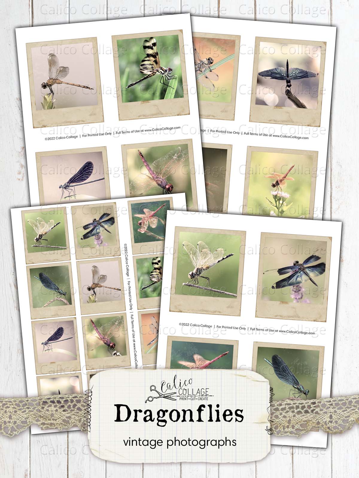 Dragonfly Vintage Photographs, Junk Journal Printable