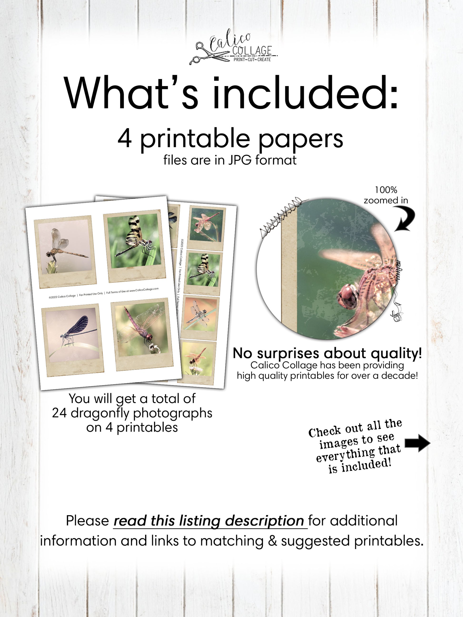 🖨️Wonderful junk journal printable dragonflies. These photographs have been aged to match your next vintage project. These unique printables would be perfect for many different paper crafts such as physical ephemera, mixed media, junk journals, bullet journals, vintage journals, hangtags and so much more! Let your awe-inspiring imagination play!