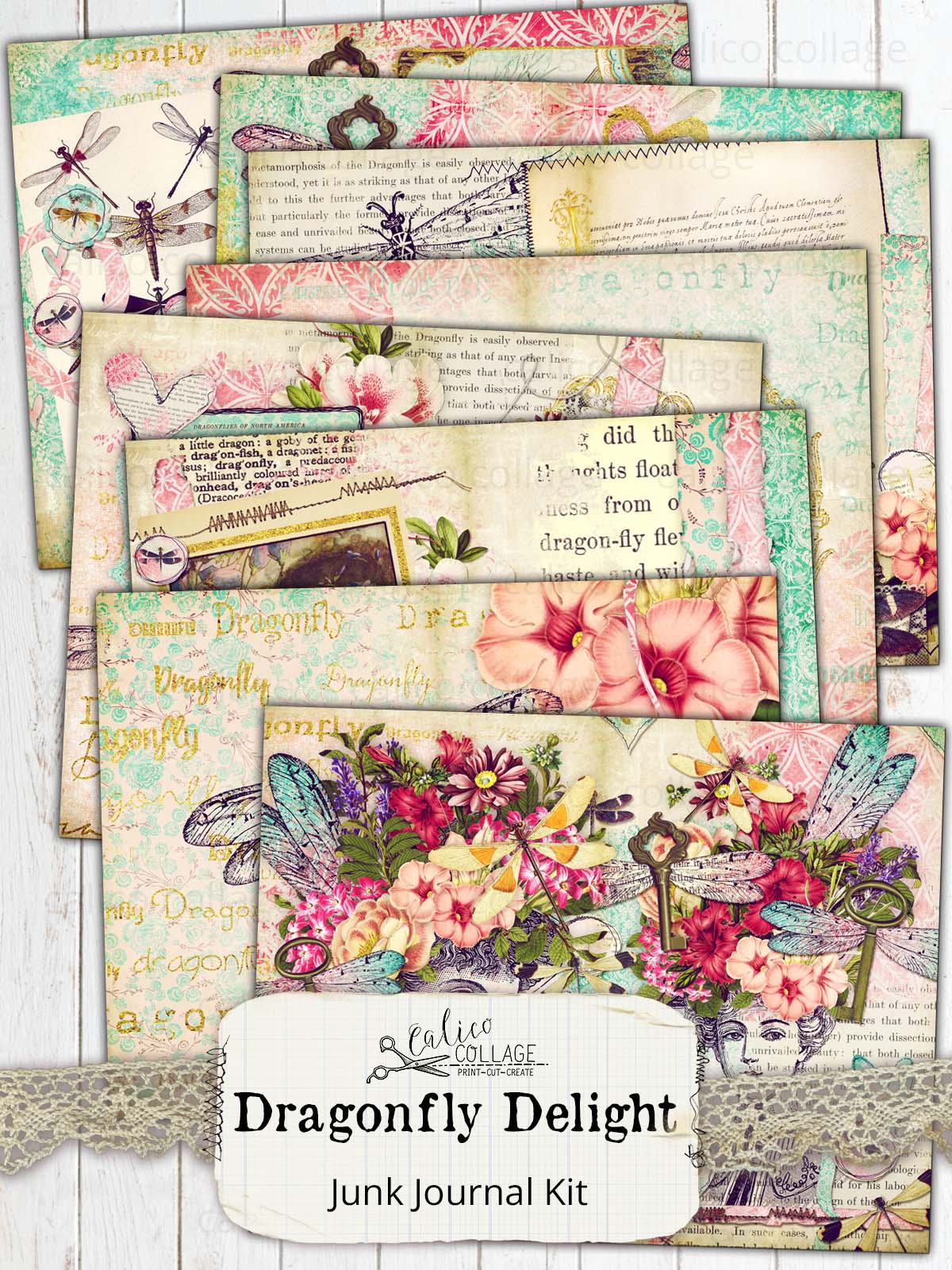 🖨️A beautiful vintage whimsical junk journal kit with dragonflies, roses, and garden ephemera. Use the pages to fill up your junk journal by folding them in half, then cut out the ephemera and use them for embellishments. Junk Journal Kits can be used for other papercrafts such as glue books, scrapbooks, travel notes, and more.
