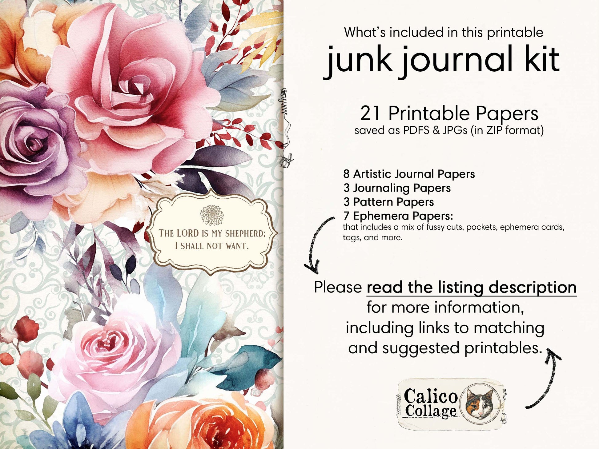 🖨️ Immerse yourself in inspiration with this Faith Junk Journal Kit, a printable collection beautifully blending uplifting Bible verses with stunning floral designs. Perfect for Bible Journaling enthusiasts, this kit enriches your reflection and study time, integrating faith and creativity. Each page invites you to explore deeper connections and personal growth, making it an essential addition to your spiritual journey. Transform your journaling practice with this thoughtfully curated Faith Junk Journal, where scripture and nature meet to inspire your path.