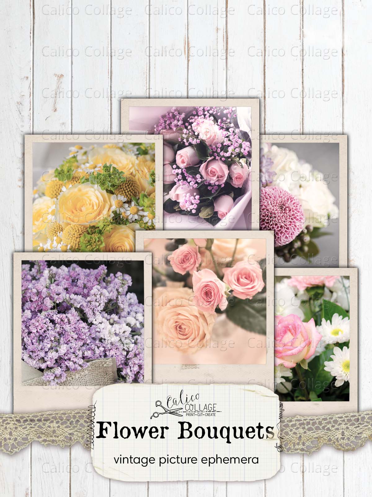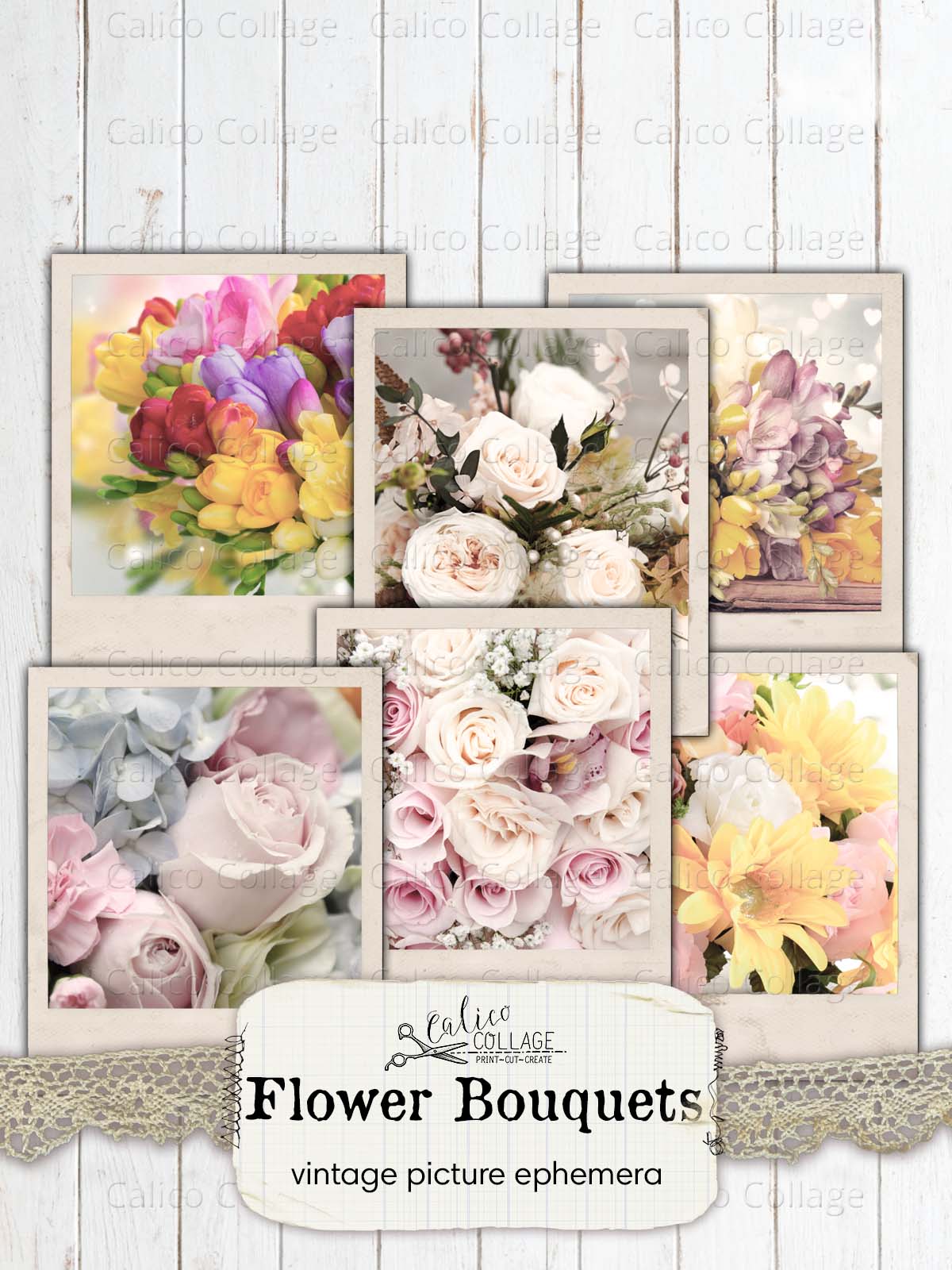Flower Bouquet Vintage Photographs, Junk Journal Printable