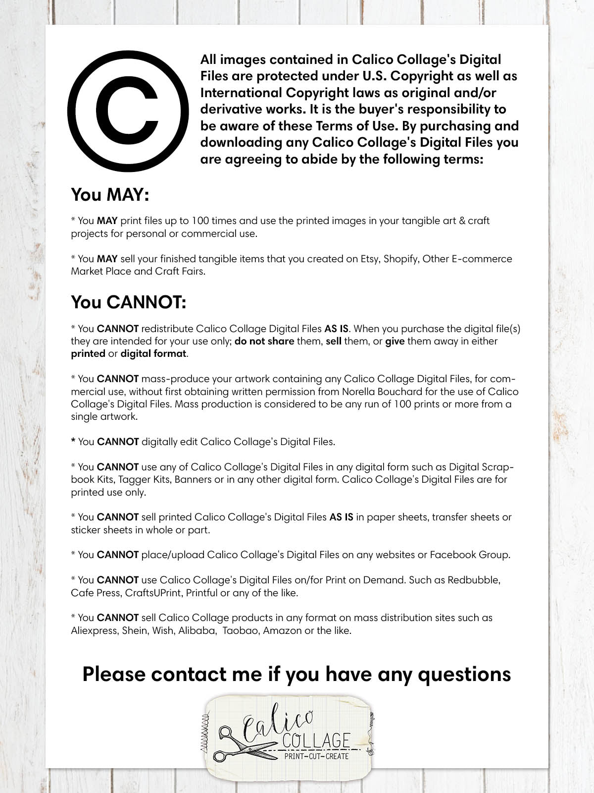 Once your order has been processed you will receive an email with instructions on how to download your files. If you do not receive your email in a timely manner you can simply log back into your account here on www.CalicoCollage.com and download your files.