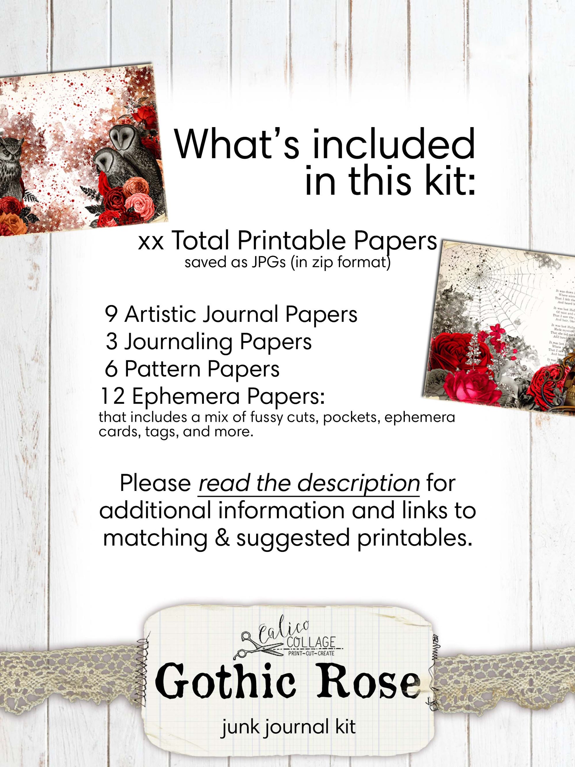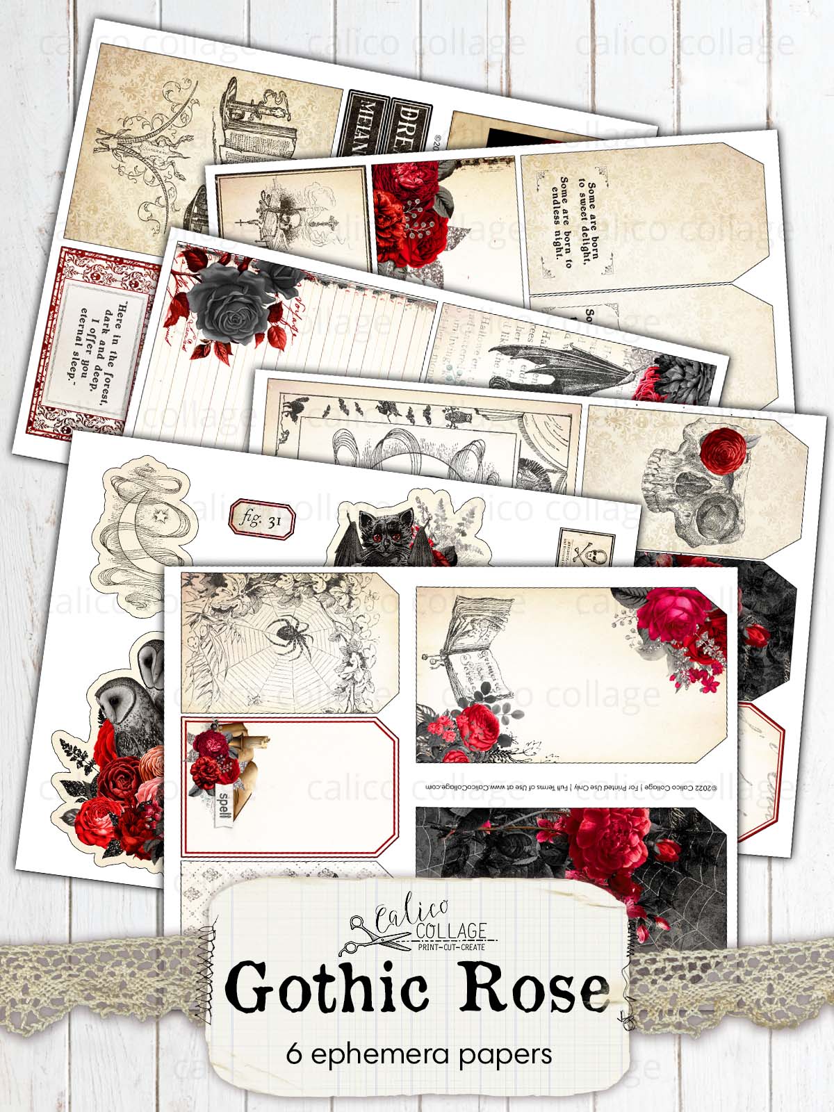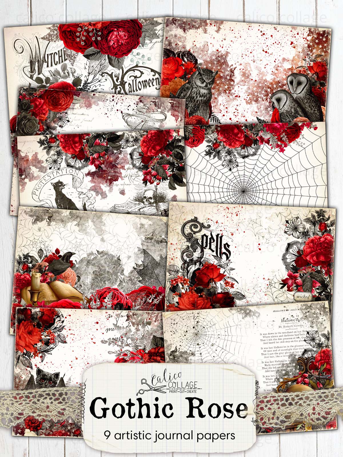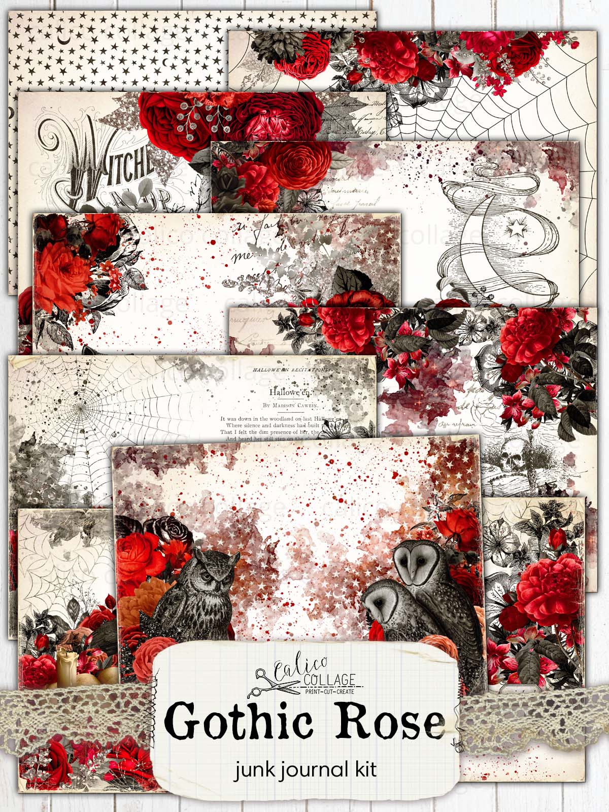 Halloween Ephemera Junk Journal Printable - Gothic Rose