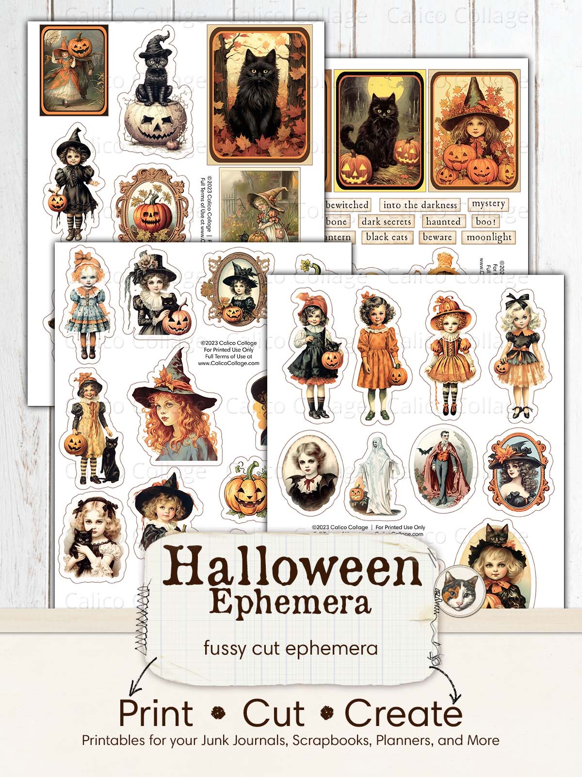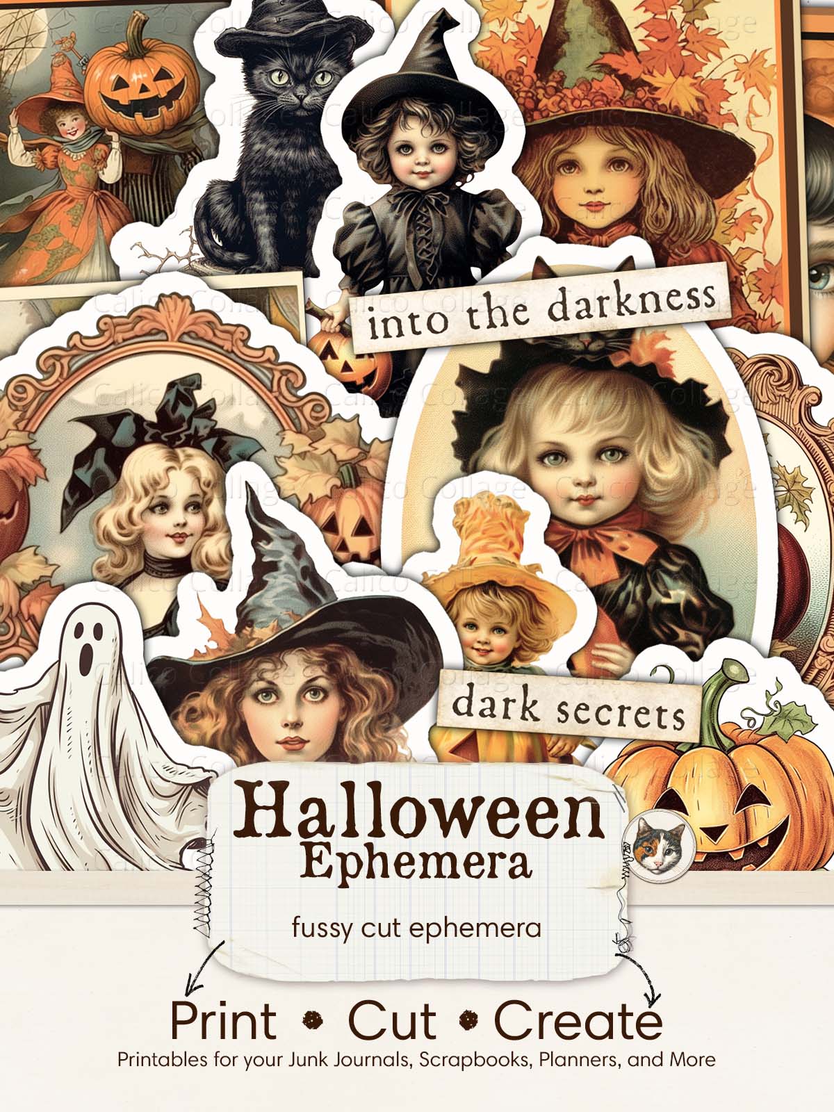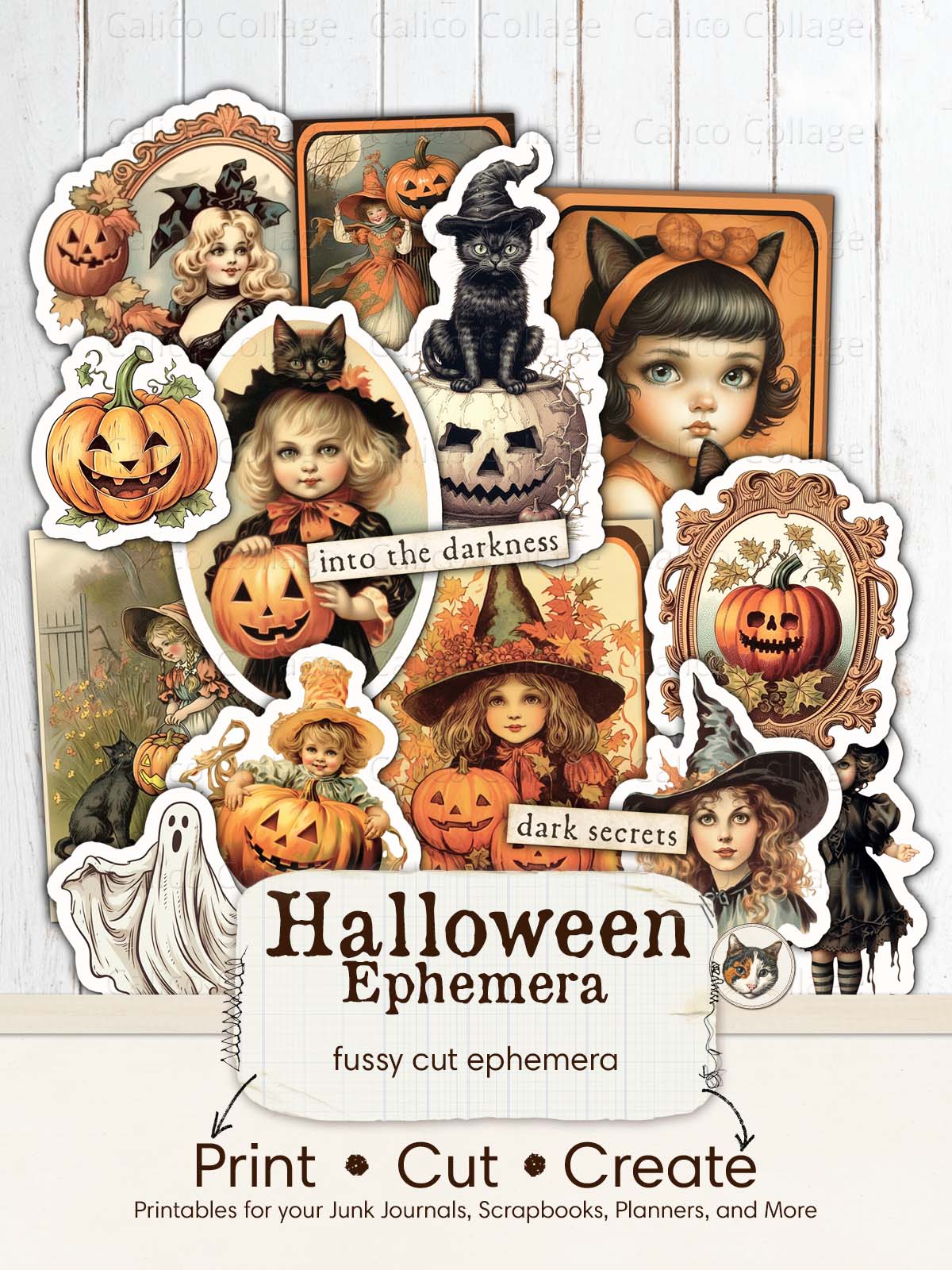 Halloween Ephemera Junk Journal Printable, Halloween Fussy Cut Ephemera