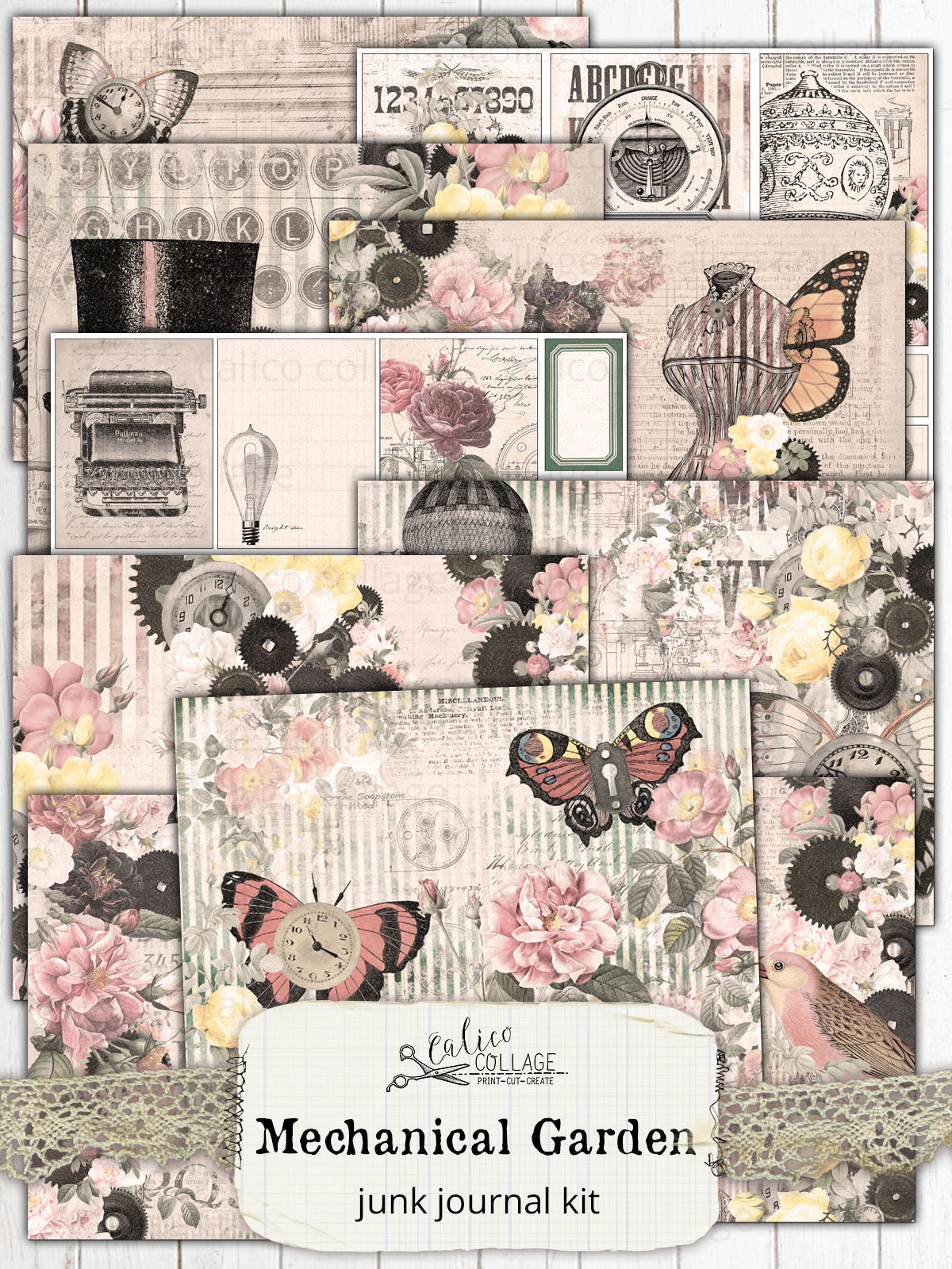 This is the complete collection with over 30 printable pages full of journal papers, ephemera, fussy cuts, and more. Everything you need to create the perfect junk journal or mixed media project.