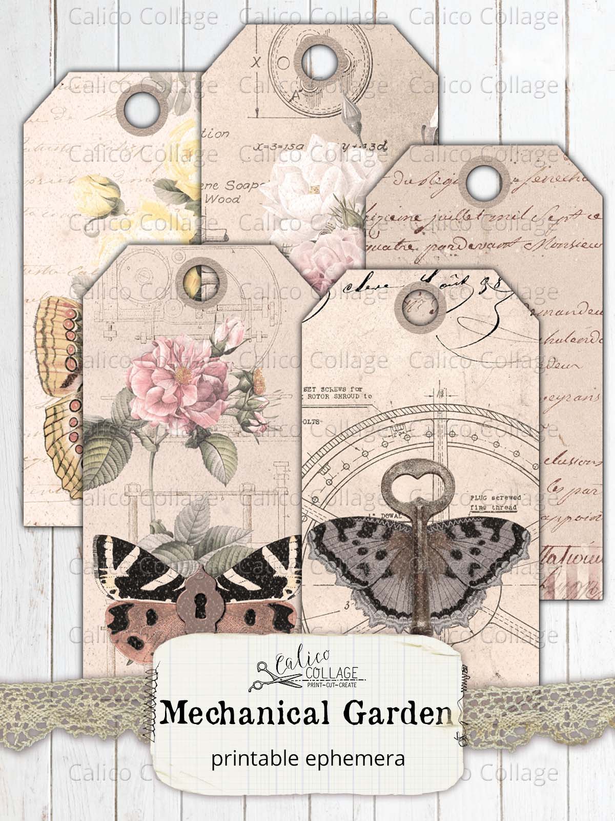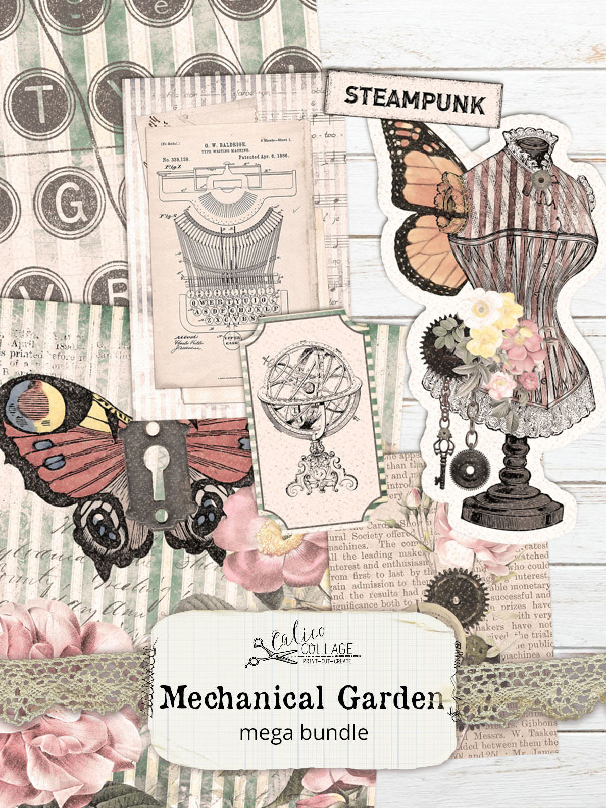 🖨️Imagine a garden filled with wild roses and flowers, among this garden are birds and unique butterflies with keys, clocks, and locks for bodies. This Mechanical Garden is exactly where your little steampunk heart could stay all day!