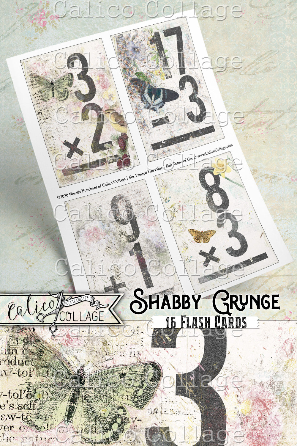 Printable Junk Journal Flashcards, Shabby Grunge