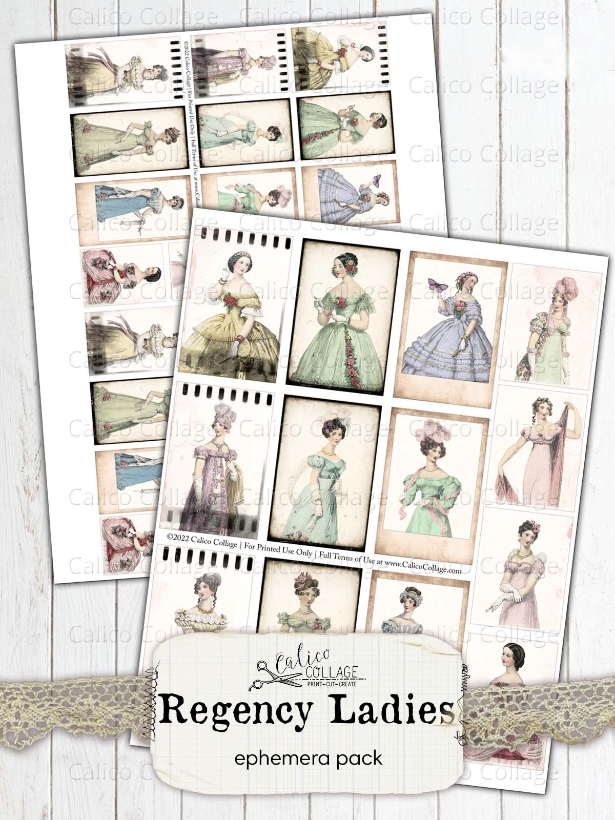 🖨️This ephemera pack was artistically designed showcasing the fashion of the Regency era. These unique printables would be perfect for many different paper crafts such as physical ephemera, mixed media, junk journals, bullet journals, vintage journals, hangtags and so much more! Let your awe-inspiring imagination play!