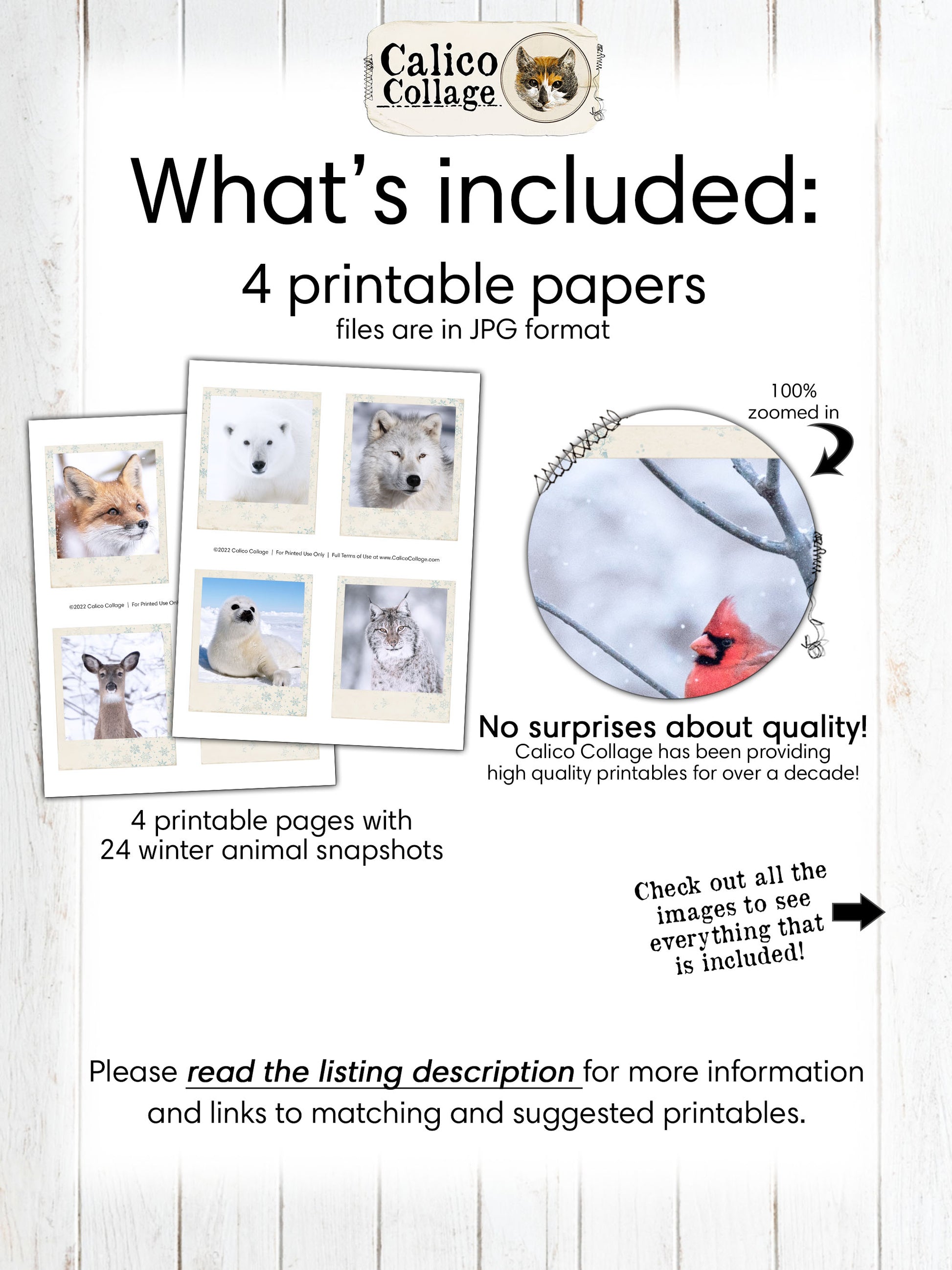 🖨️This exceptional collection of printable snapshots features a wonderful set of winter animals. This is ideal for your winter junk journal ephemera.
