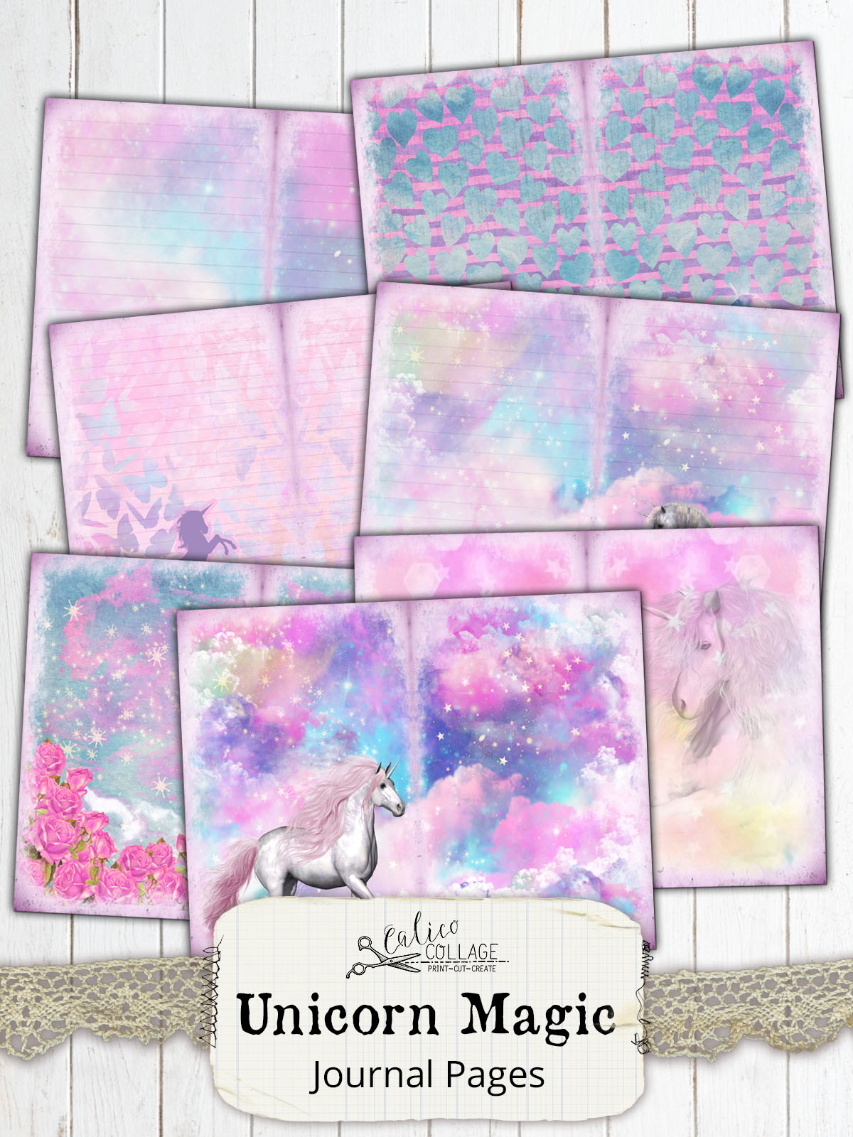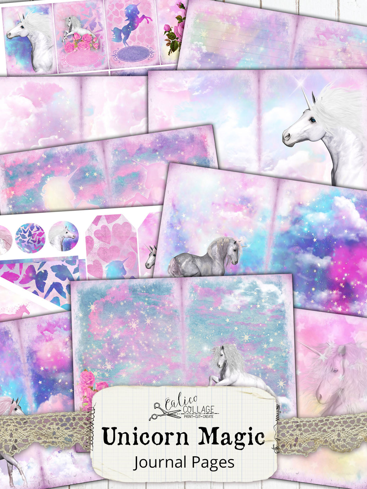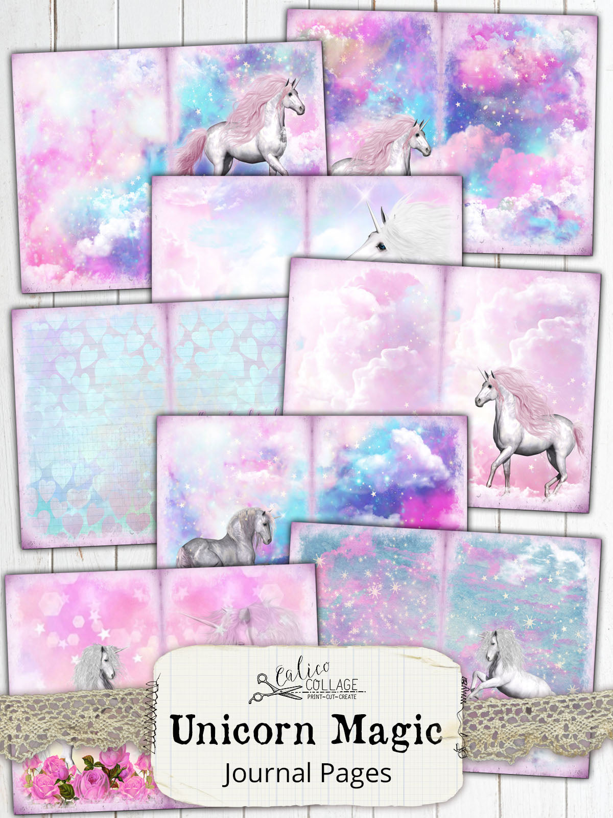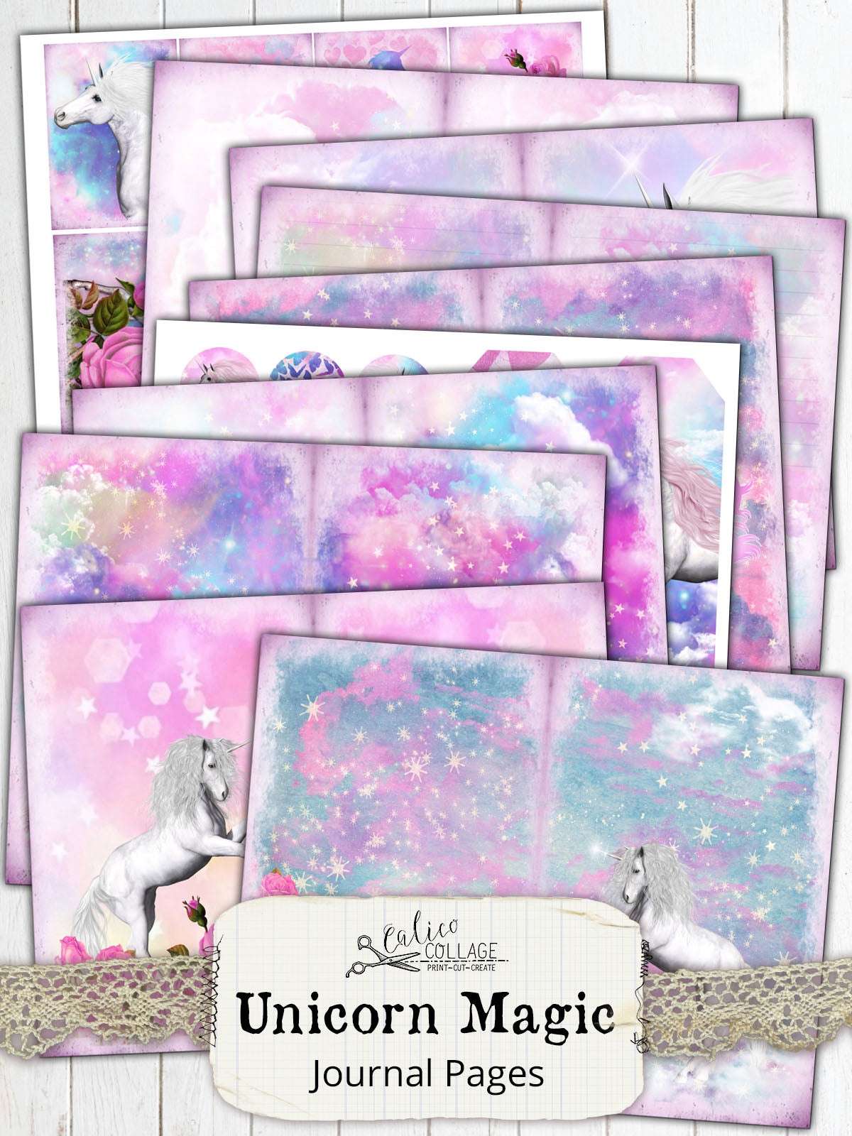 🖨️This artfully designed unicorn themed junk journal kit is full of magical unicorns, adorable hearts and starts. Perfect for a little girl's 1st junk journal, or for the little girl in all of us. Use the pages to fill up your junk journal by folding them in half, then cut out the ephemera and use them for embellishments. Junk Journal Kits can be used for other paper crafts such as glue books, scrapbooks, travel notes, and more. Let your awe-inspiring imagination play!