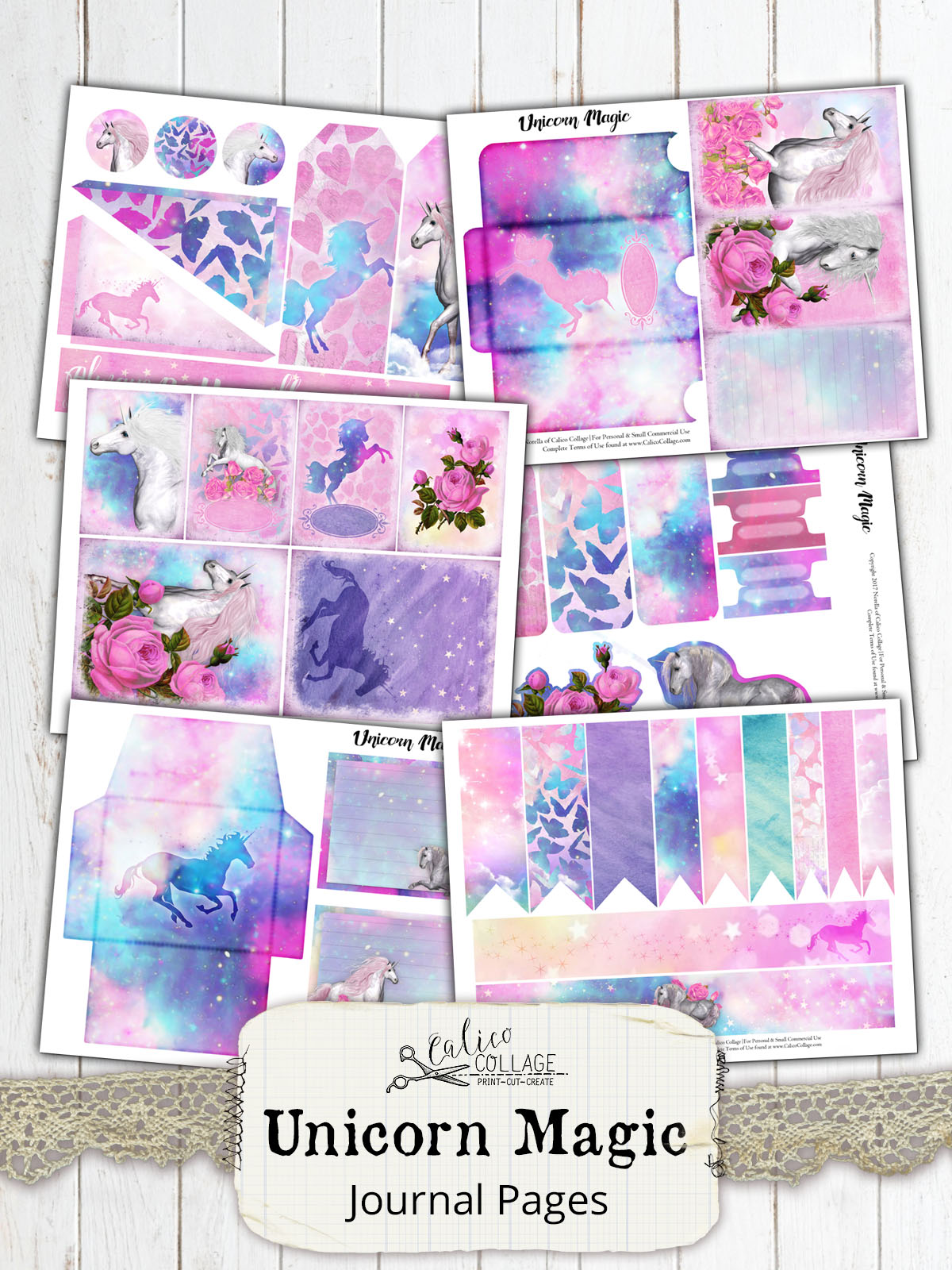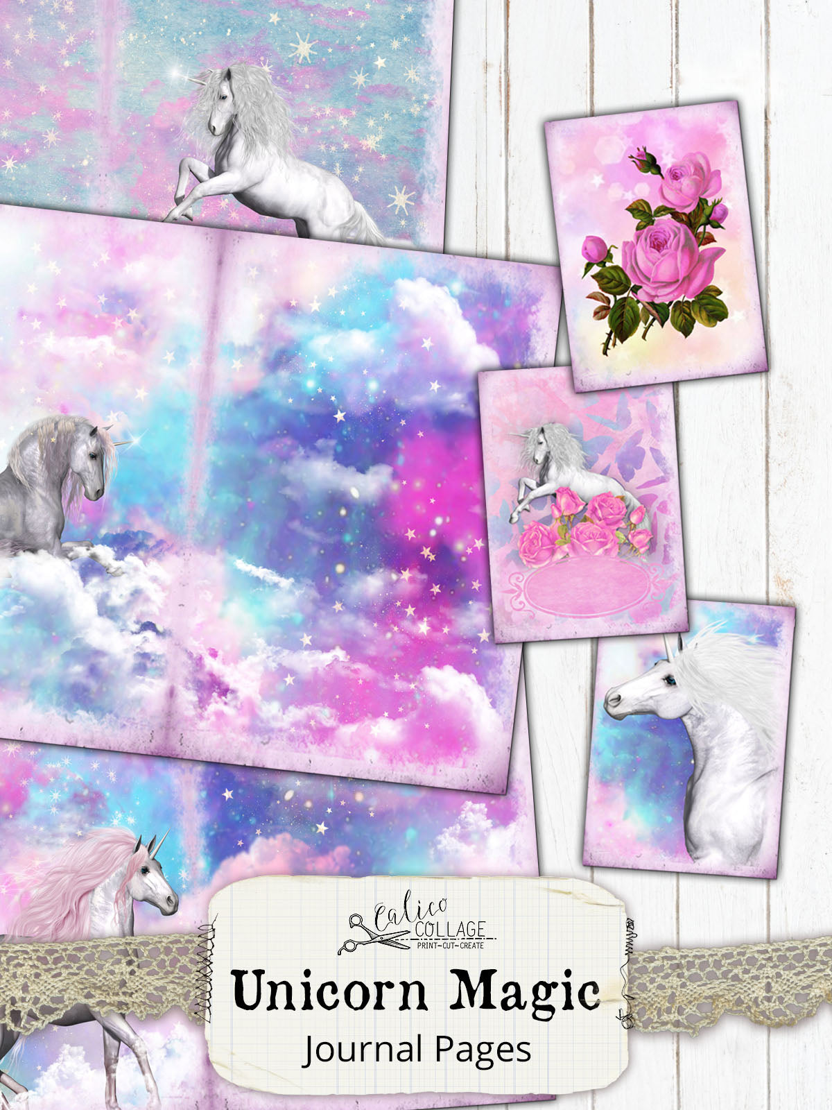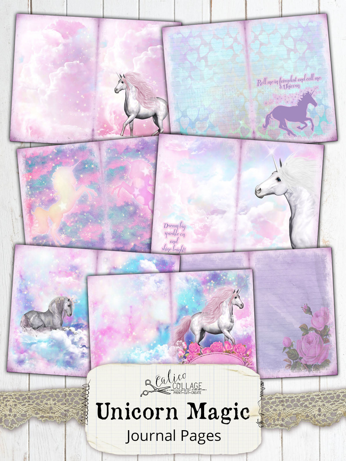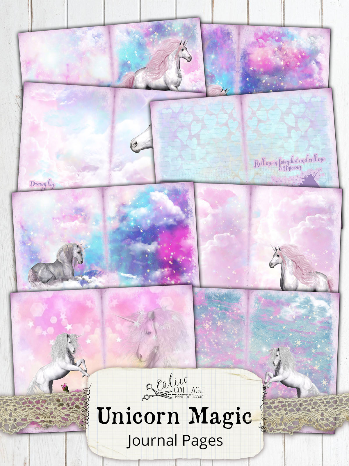 🖨️This artfully designed unicorn themed junk journal kit is full of magical unicorns, adorable hearts and starts. Perfect for a little girl's 1st junk journal, or for the little girl in all of us. Use the pages to fill up your junk journal by folding them in half, then cut out the ephemera and use them for embellishments. Junk Journal Kits can be used for other paper crafts such as glue books, scrapbooks, travel notes, and more. Let your awe-inspiring imagination play!