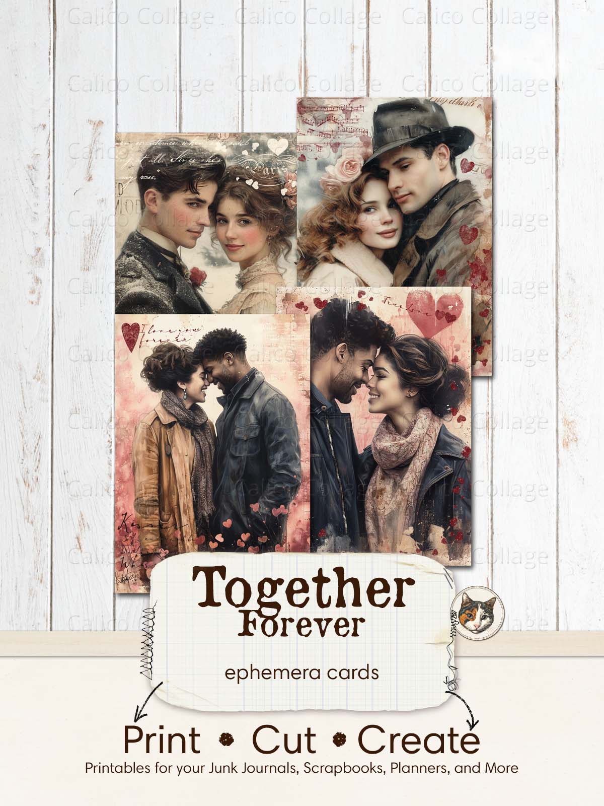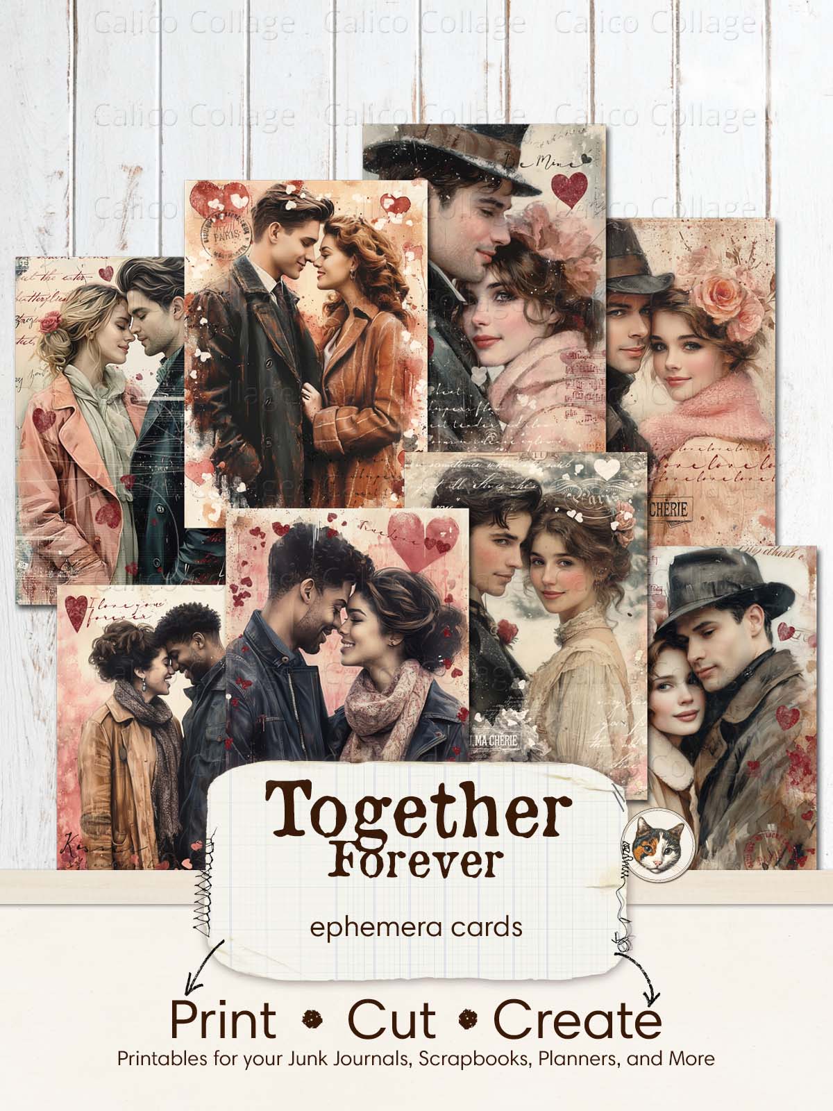 🖨️ Celebrate romance with this beautiful collection of Valentine Junk Journal Printable ephemera cards, featuring enchanting images of Couples in Love. Each card captures the essence of romance and affection, making them perfect for Valentine Couples-themed projects or as touching additions to your personal journal. These Couples Ephemera Cards are ideal for crafting, scrapbooking, or as heartfelt tokens for someone special, embodying the spirit of love and connection in every design.