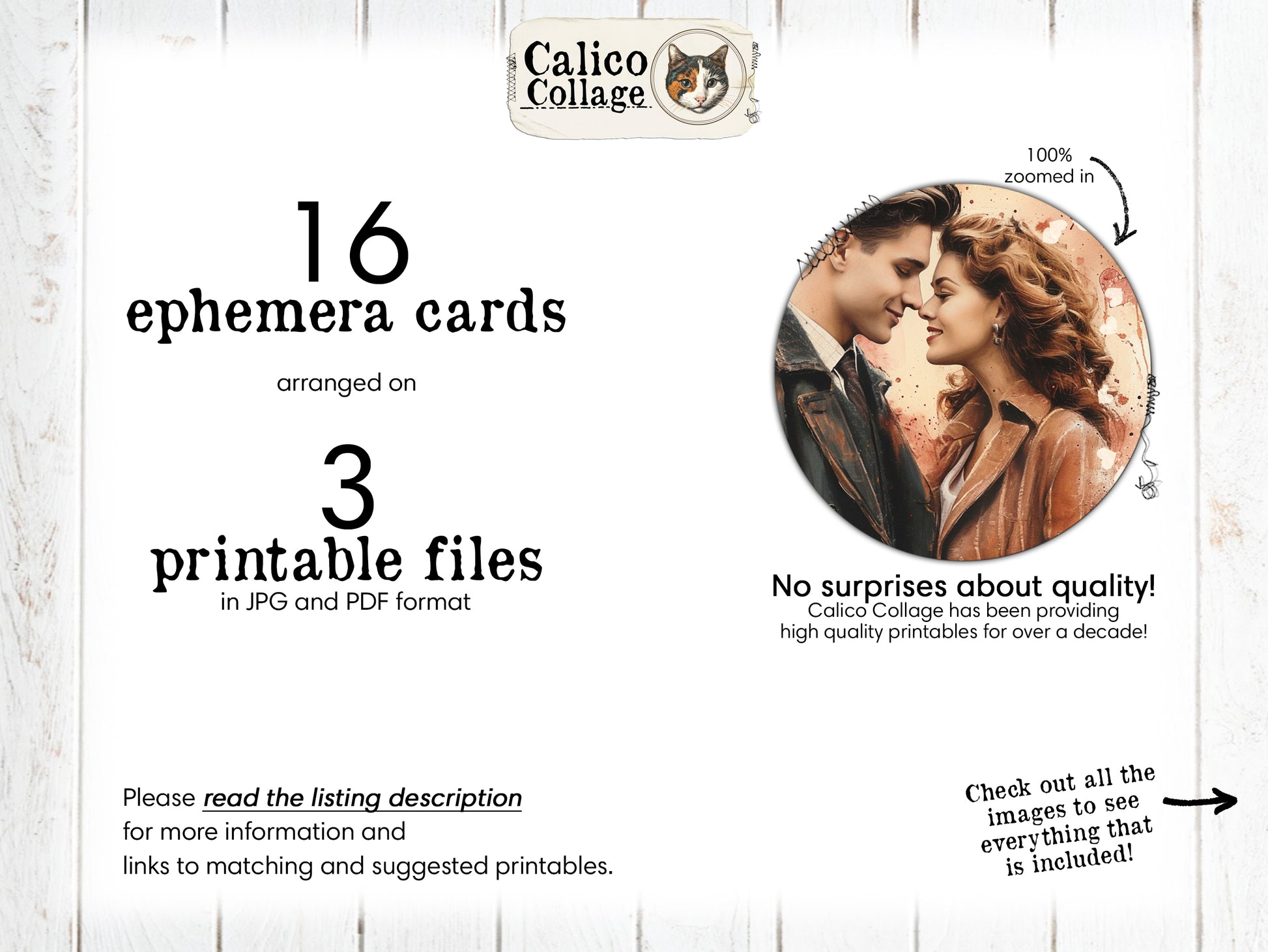 Valentine Junk Journal Printable, Couples Ephemera Cards
