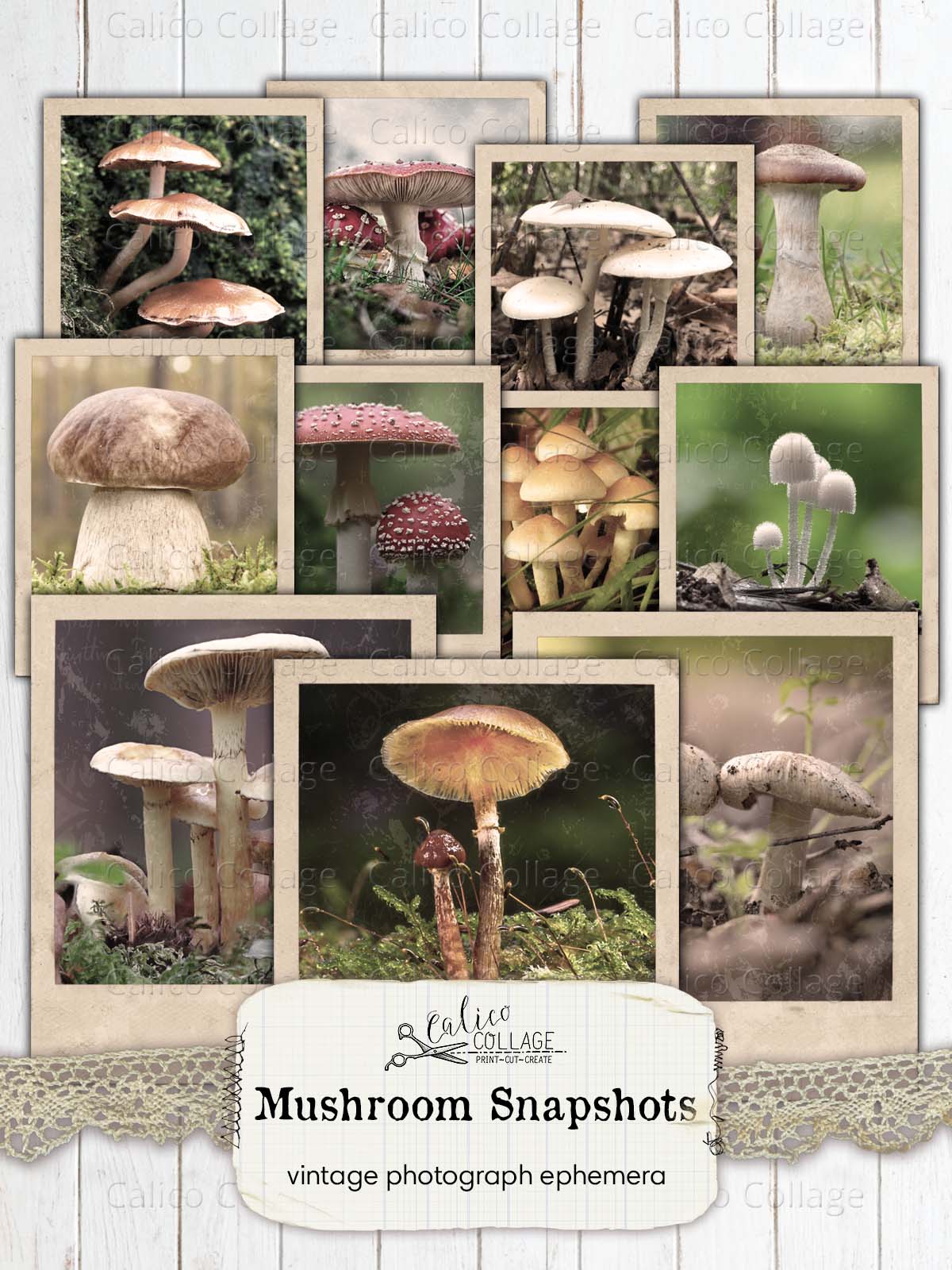 Vintage Mushroom Photographs, Junk Journal Ephemera