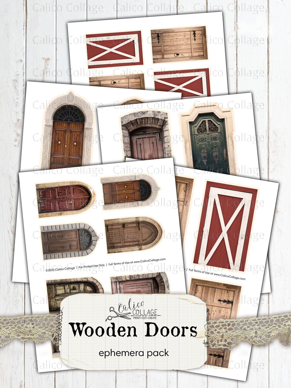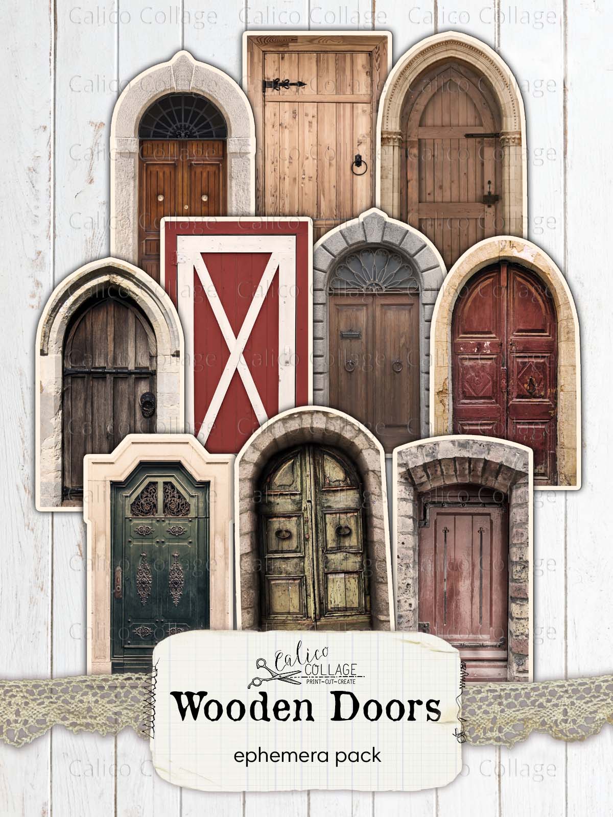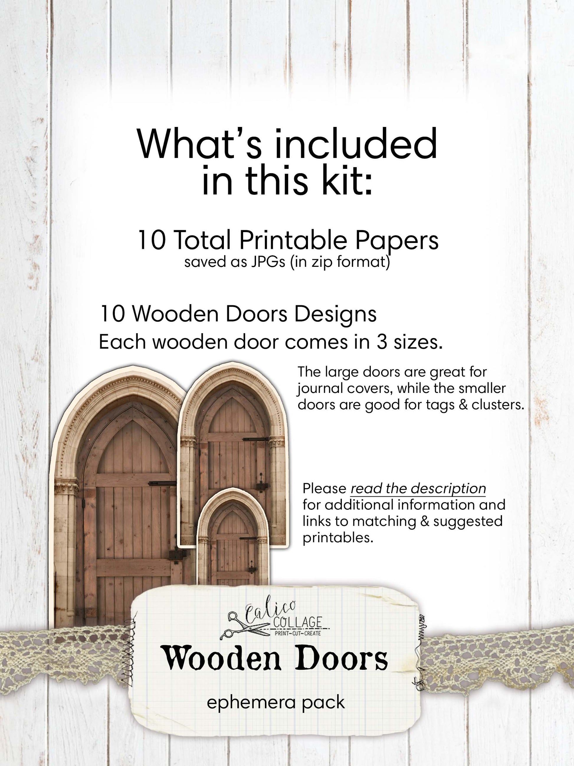 🖨️An adorable collection of vintage wooden doors junk journal printables. Fussy cut out the doors and cut around the door to "open" it. You can attach the doors to your journal covers or the smaller doors to tags. Place cute images behind the doors for a little secret surprise! Let your awe-inspiring imagination play!