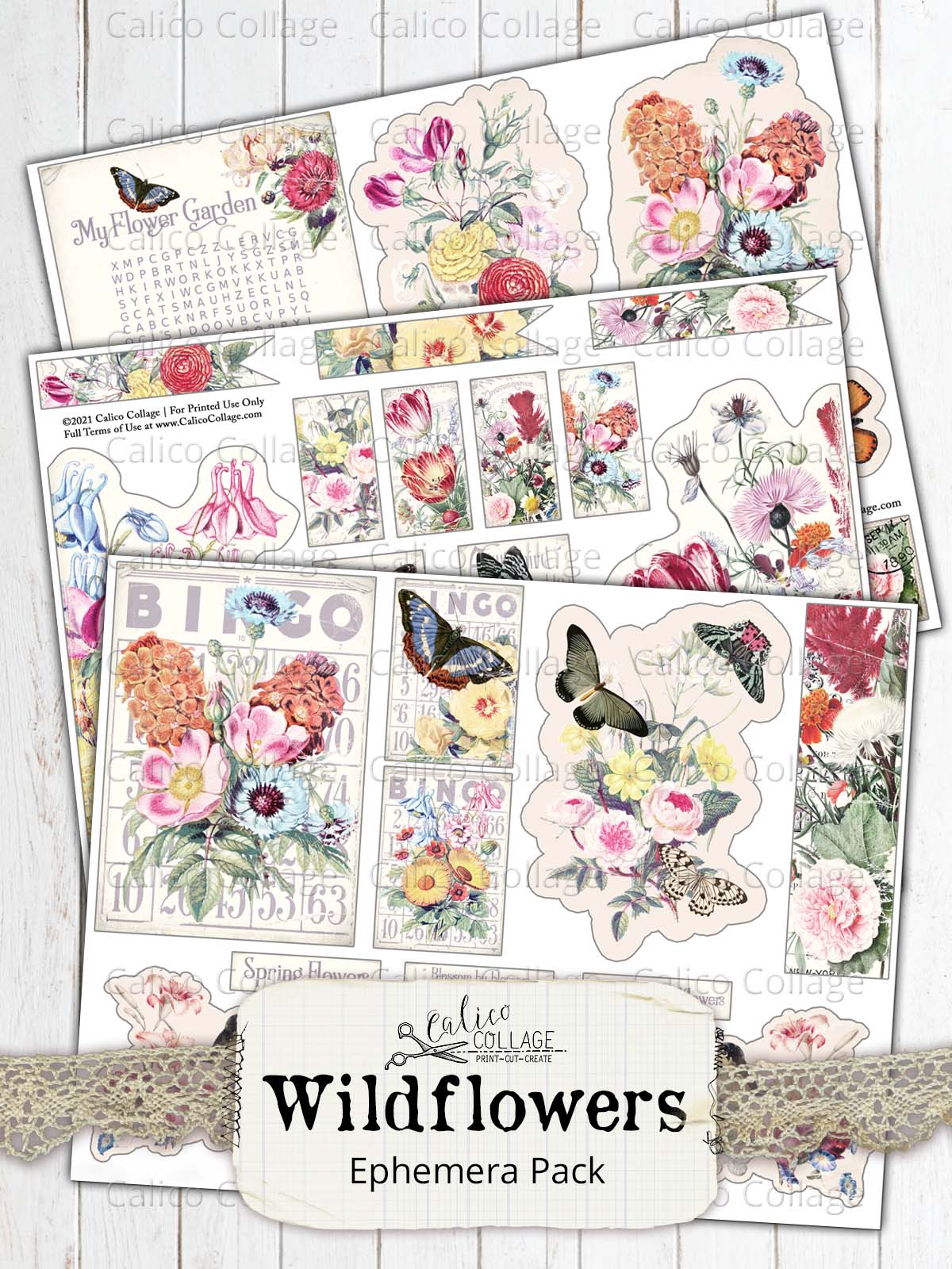 🖨️A beautiful collection of vintage floral ephemera created to match the "Wildflower Junk Journal Papers". These unique printables would be perfect for many different paper crafts such as physical ephemera, mixed media, junk journals, bullet journals, vintage journals, hang tags and so much more! Let your awe-inspiring imagination play!