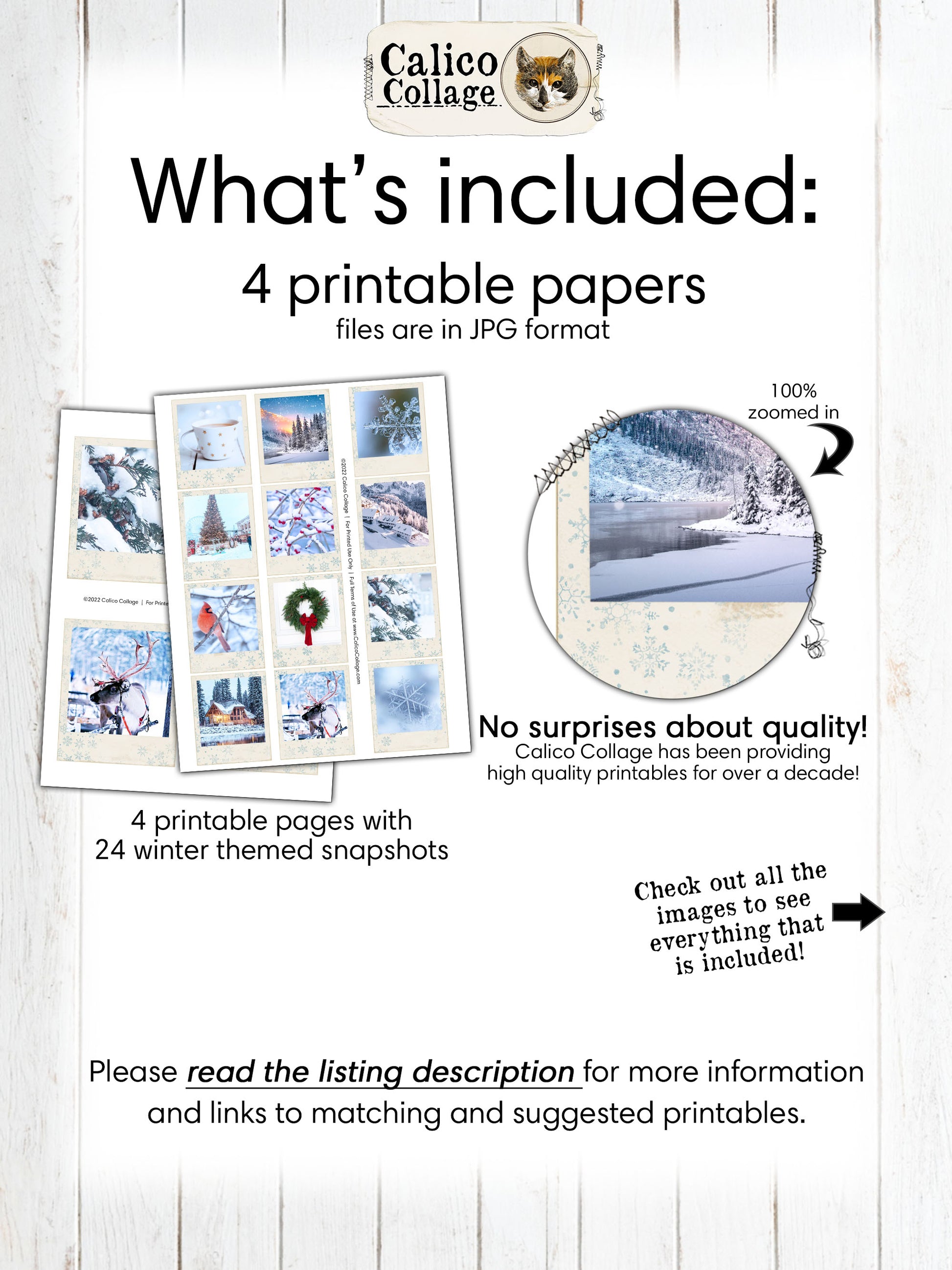 🖨️A beautiful collection of printable snapshots in a vintage winter ephemera theme. Perfect for your winter junk journal ephemera.
