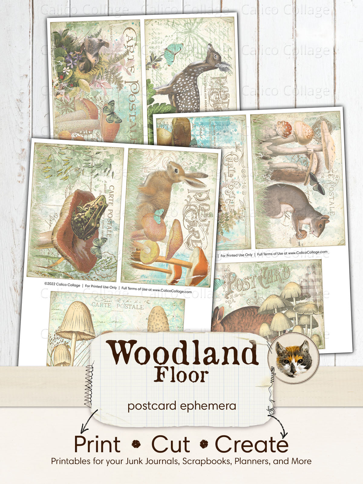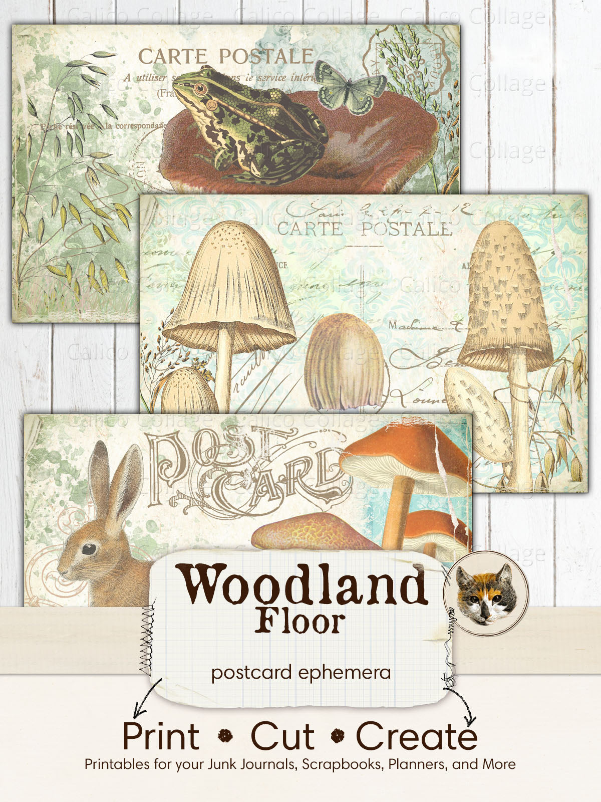 🖨️An artful collection of printable postcard ephemera in a woodland theme. The perfect addition to your junk journal or scrapbook.